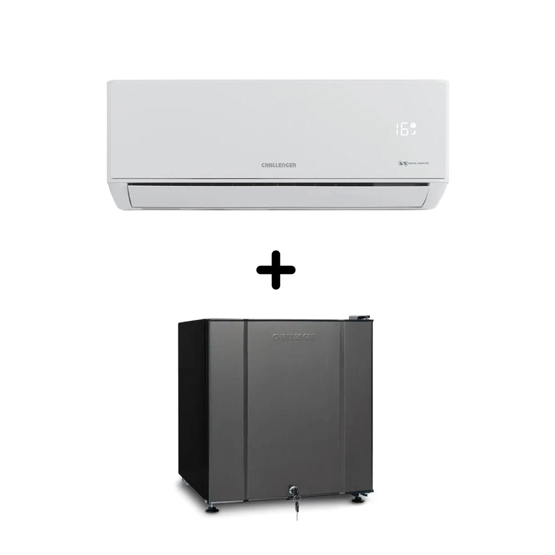 Combo Aire Acondicionado Challenger Inverter 12000 Btu 220V + Minibar CR 051, Color Blanco y Gris