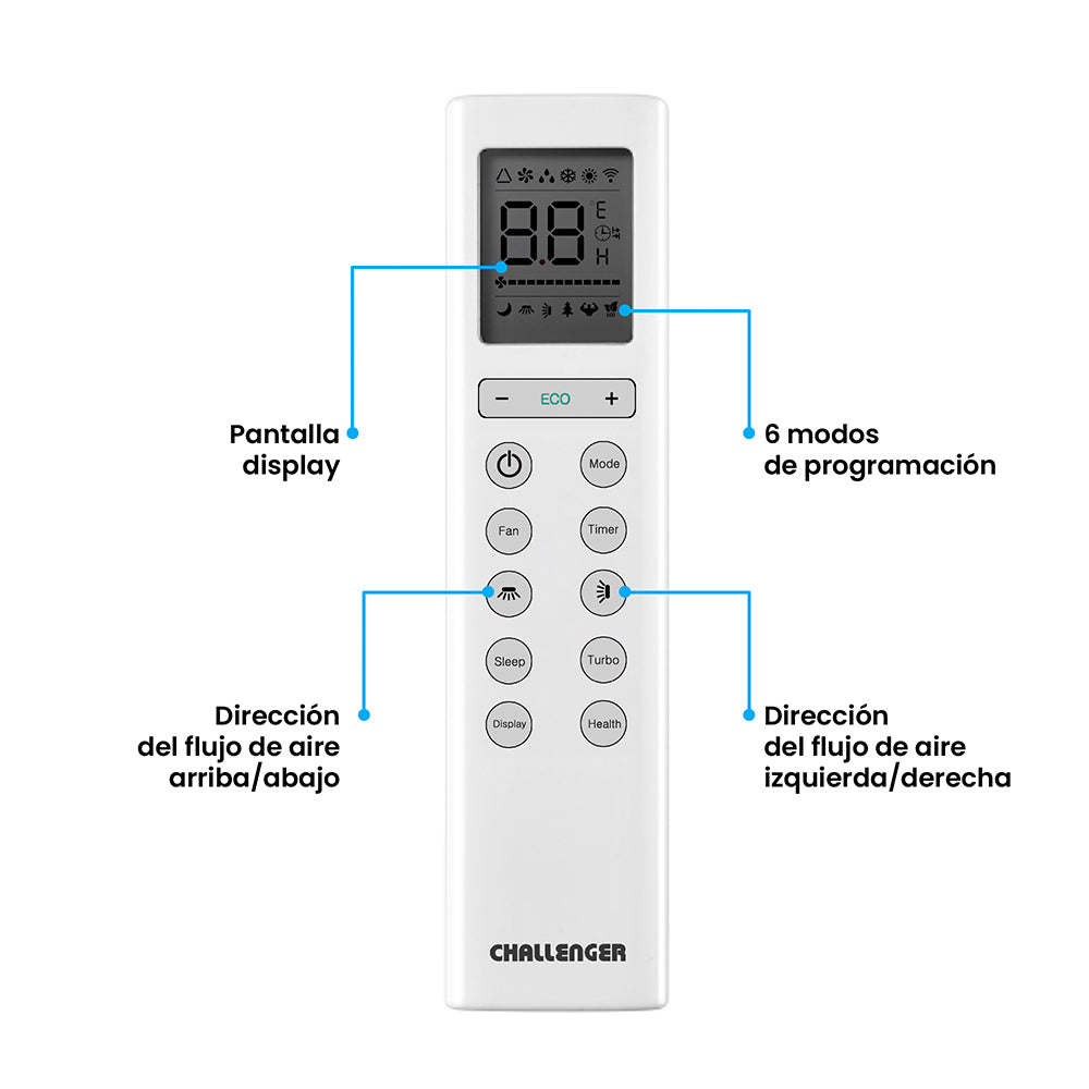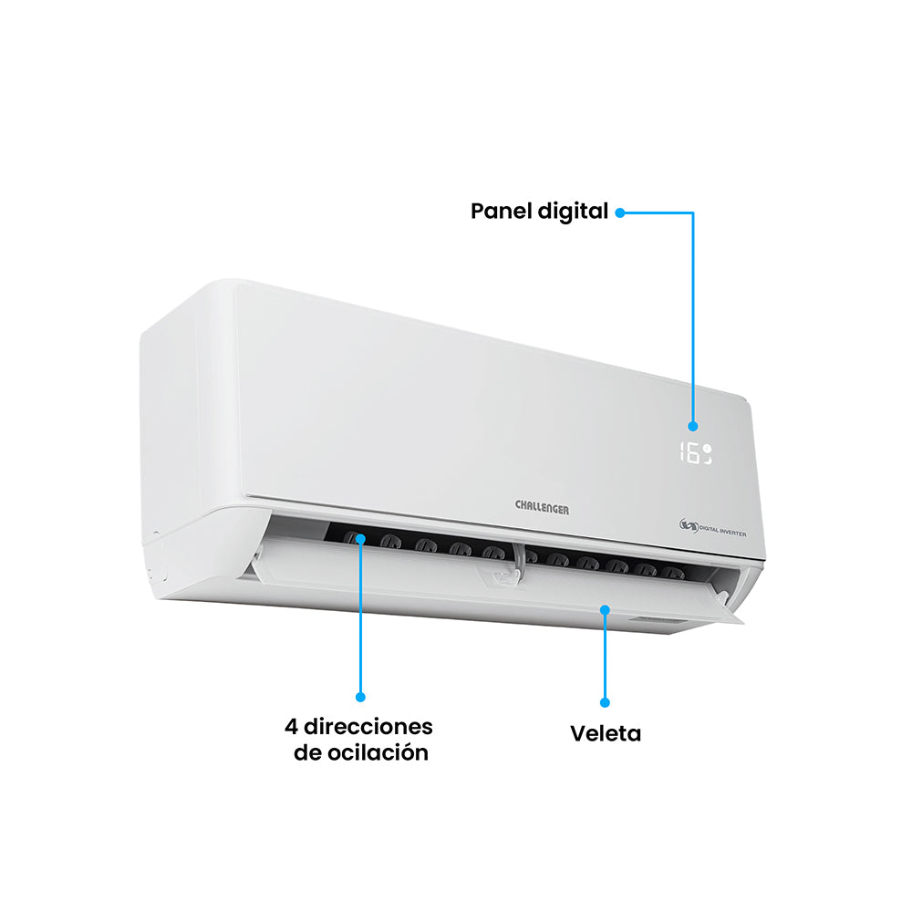 El modelo CR 051 + AC12K INV 220V-60HZ cuenta con un panel de control electrónico y una pantalla digital que facilitan su uso. Además, incluye un control remoto para mayor comodidad, permitiendo ajustar la temperatura y las funciones desde cualquier lugar de la habitación. Su función de deshumidificación y ventilación contribuye a mantener un ambiente saludable y confortable.