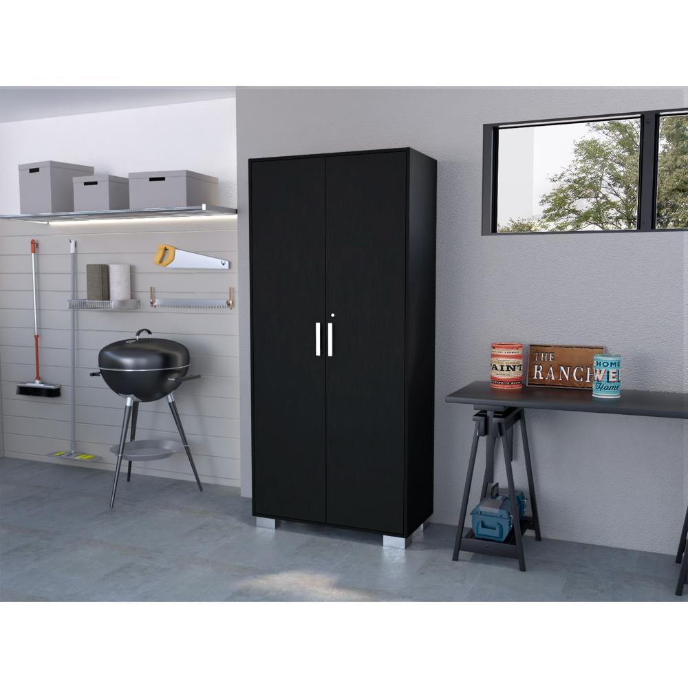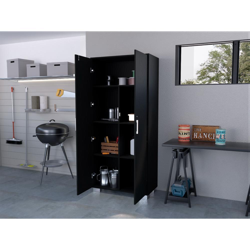 Alacena, con dos puertas múltiples entrepaños para ubicar alimentos y elementos de cocina, patas metálicas.