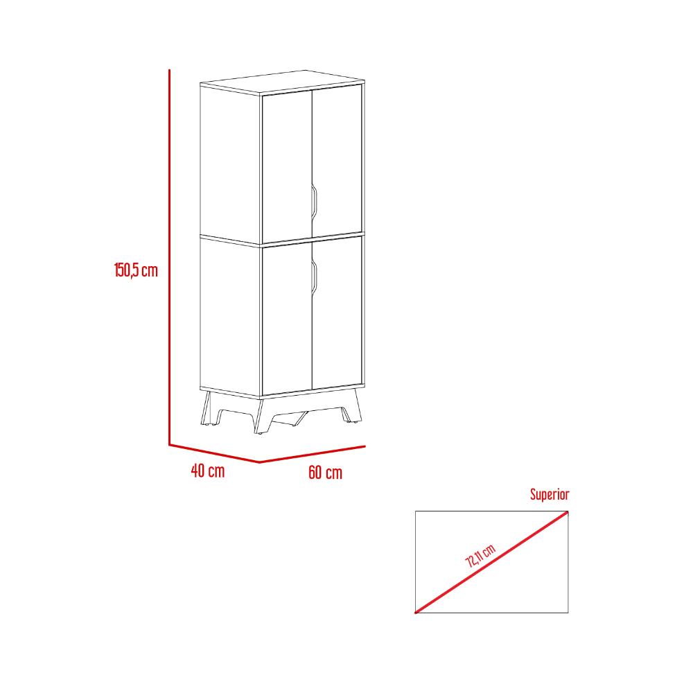 Alacena Birsa, Blanco y Café Claro, con Patas de Madera y Varios Entrepaños ZF