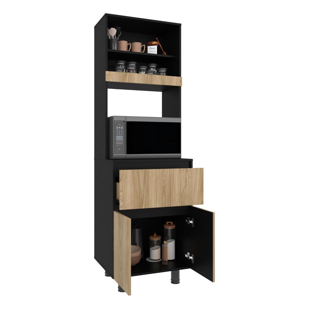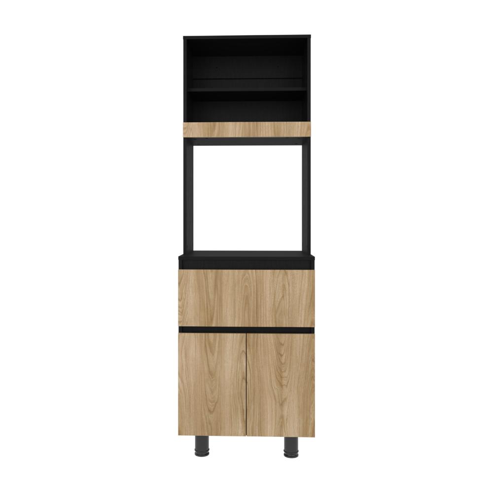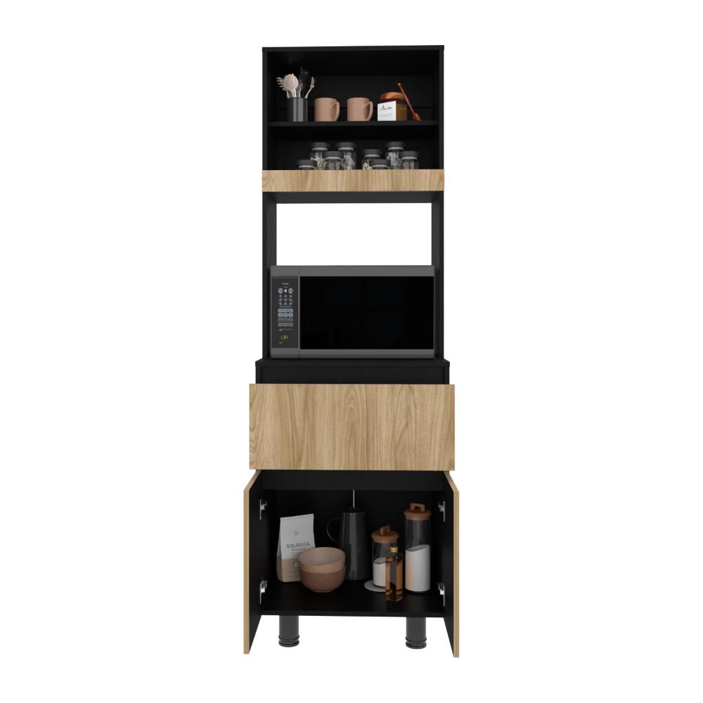 Alacena, con dos puertas abatibles, amplios espacios para almacenamiento, espacio para microondas, patas en acero, un cajón