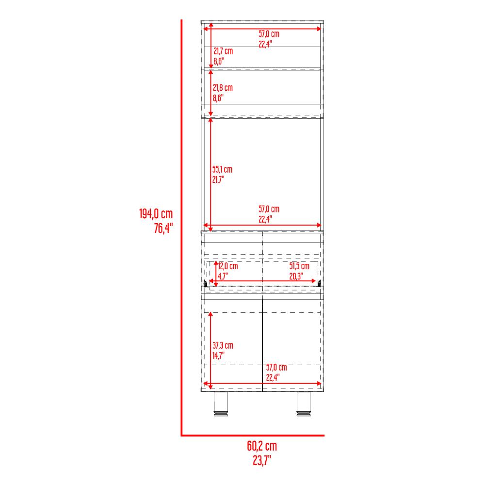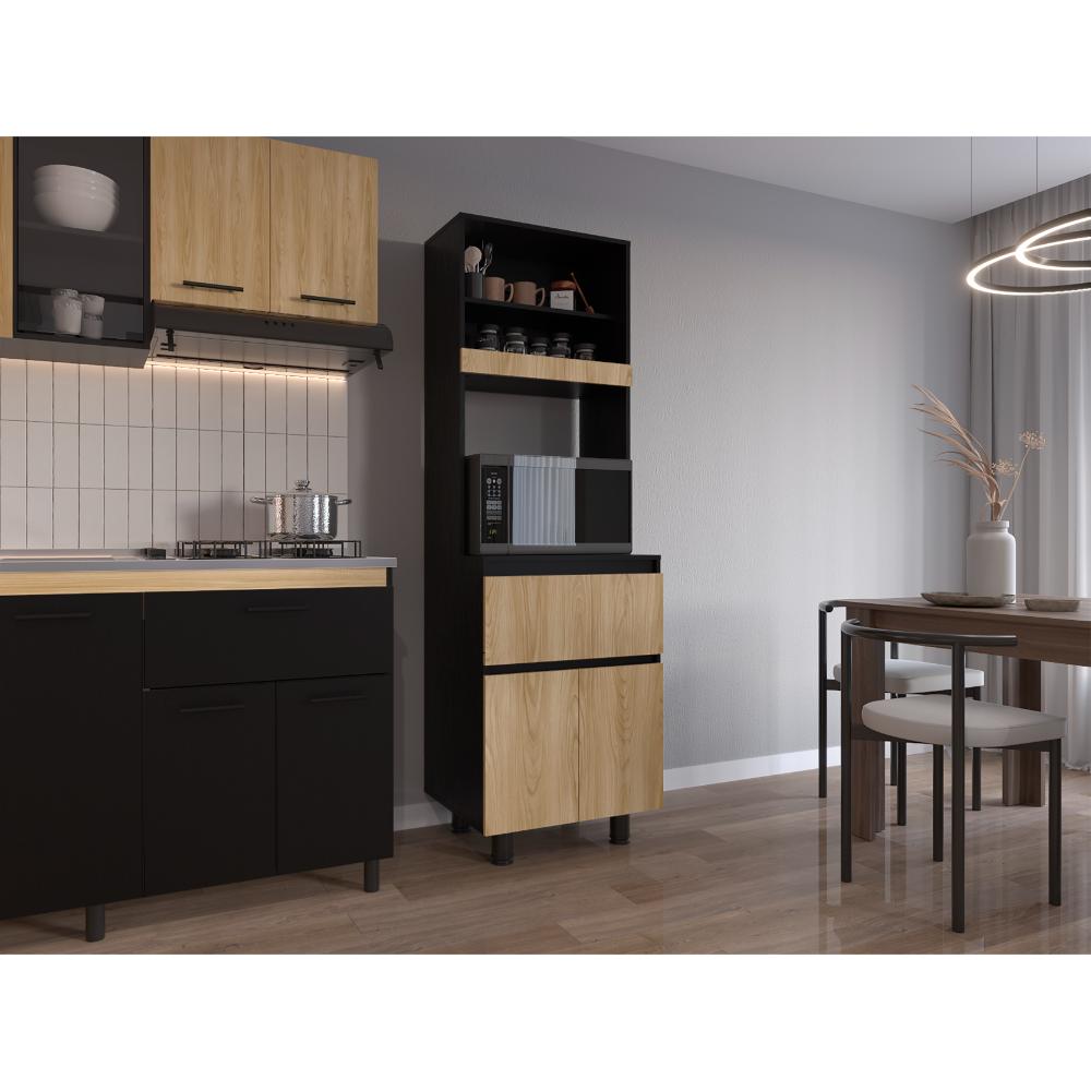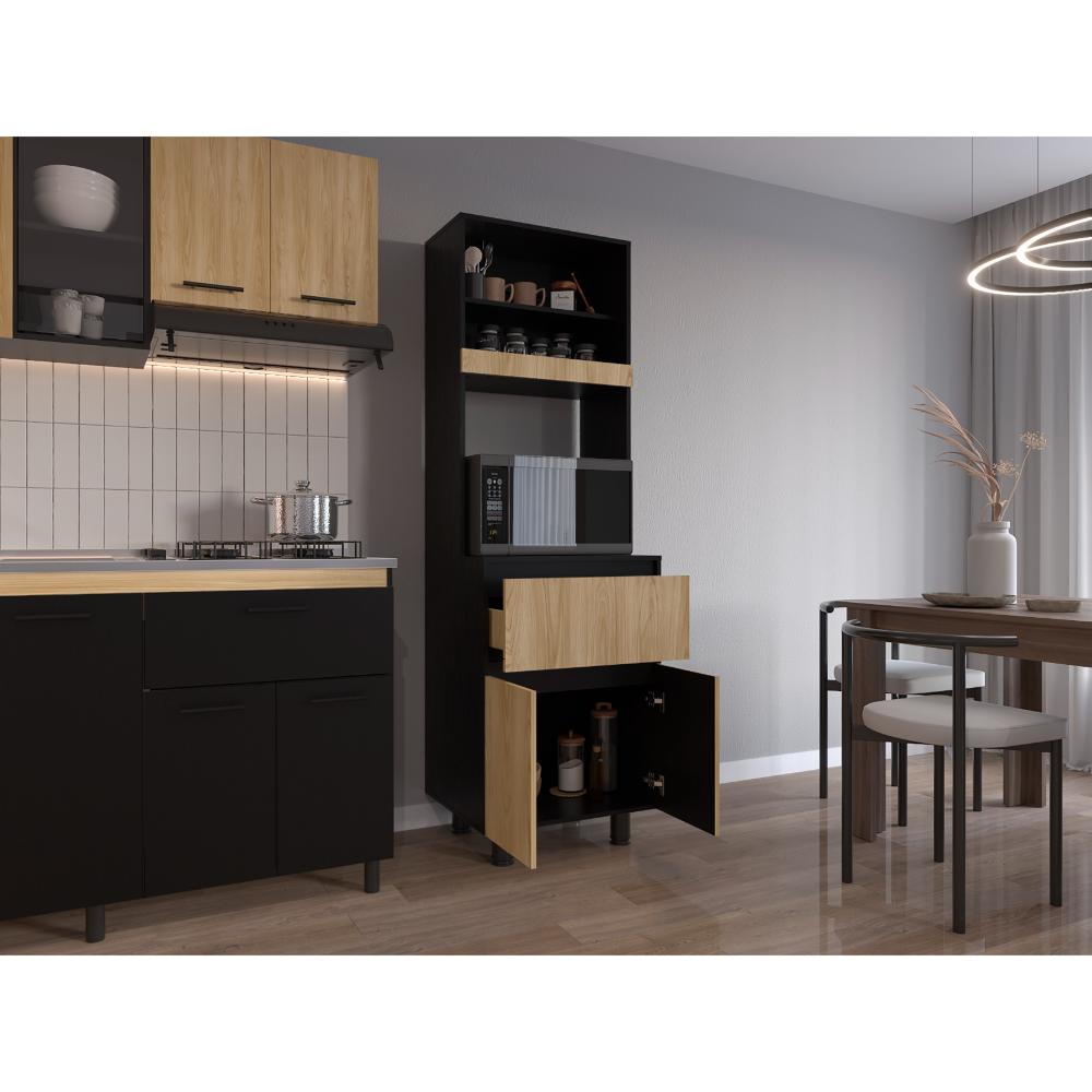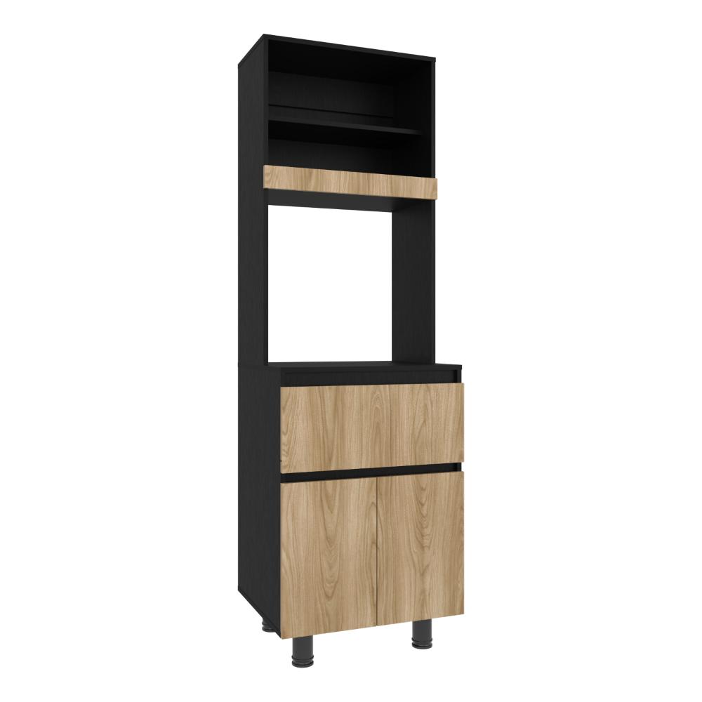 Alacena, con dos puertas abatibles, amplios espacios para almacenamiento, espacio para microondas, patas en acero, un cajón