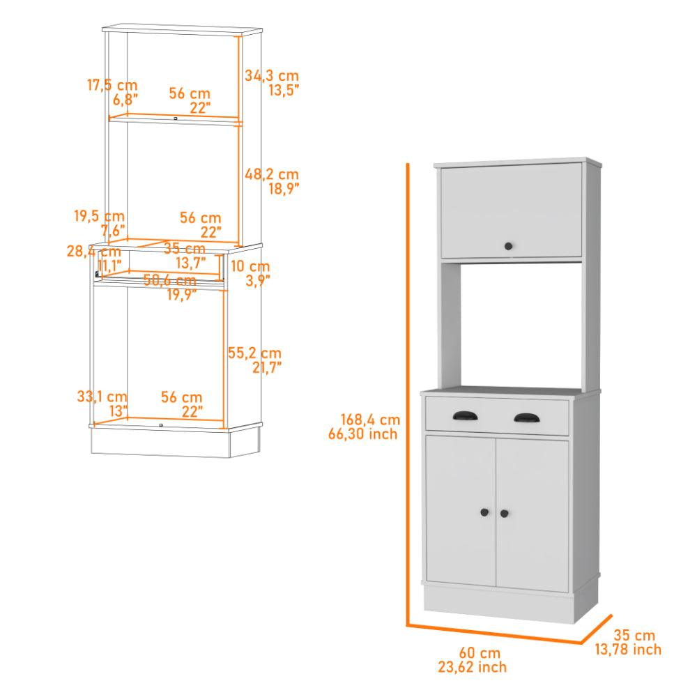 Alacena, con múltiples espacios de almacenamiento, debe ser anclado a la pared incluye los elementos para esto, un cajón.