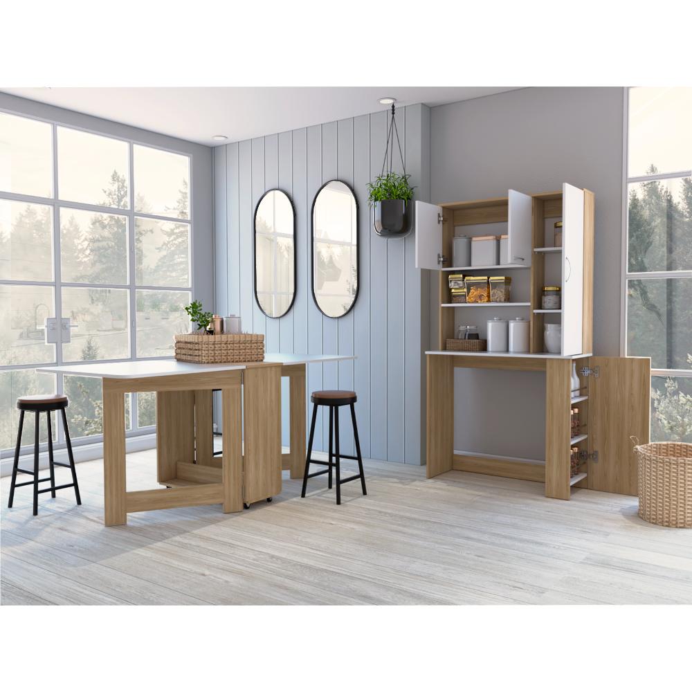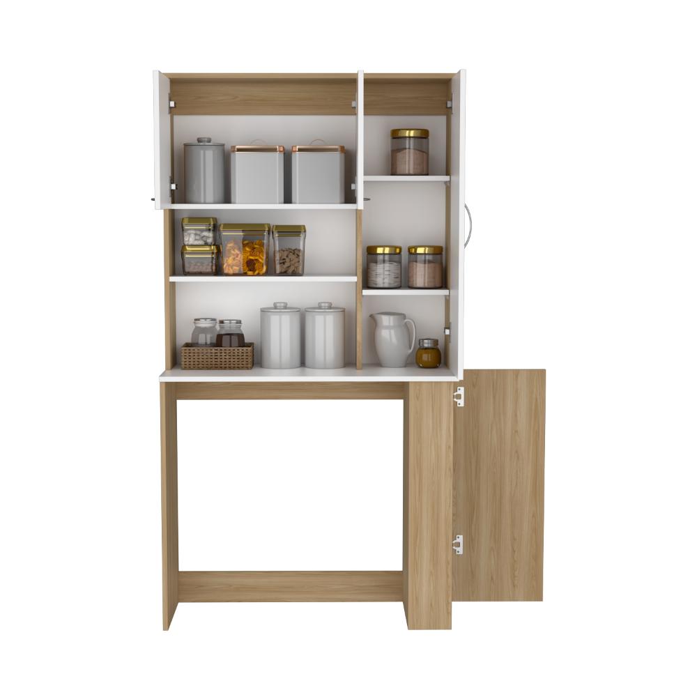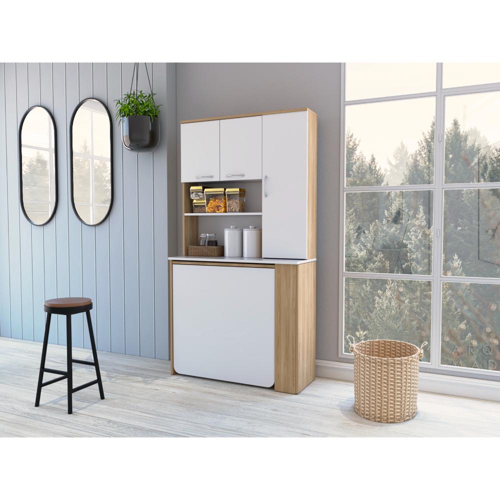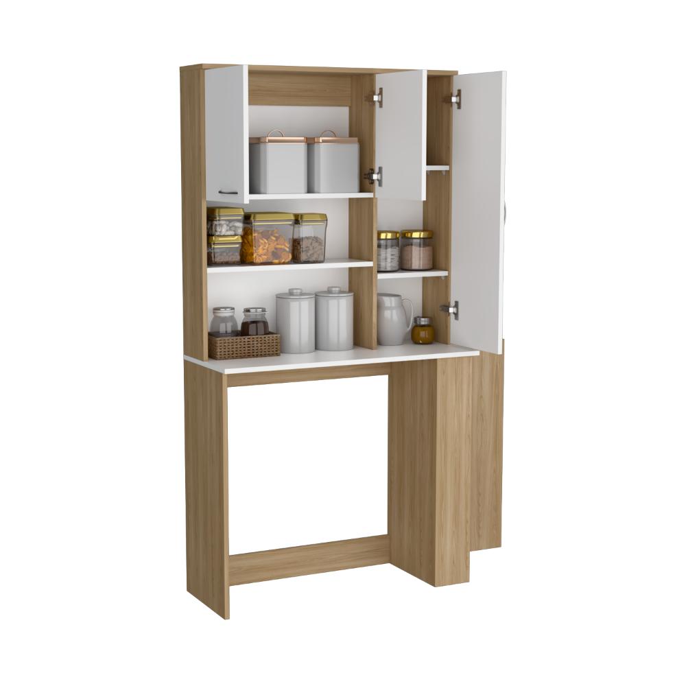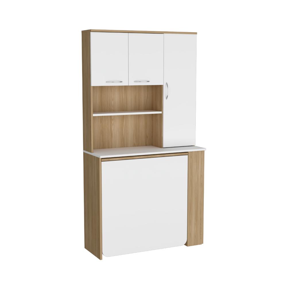 Alacena Multiusos Cosme, Fresno y Blanco, con Tres Puertas Batientes