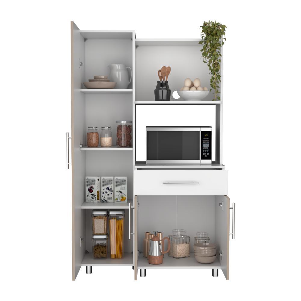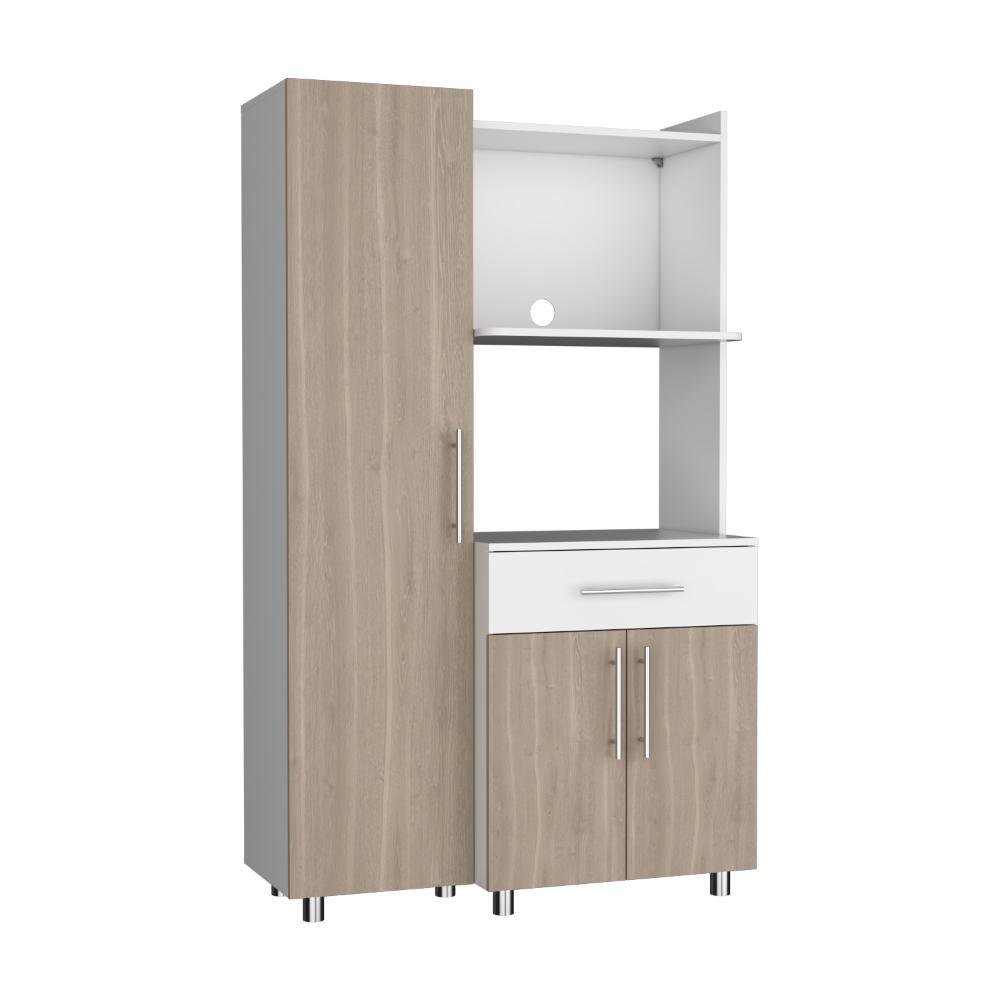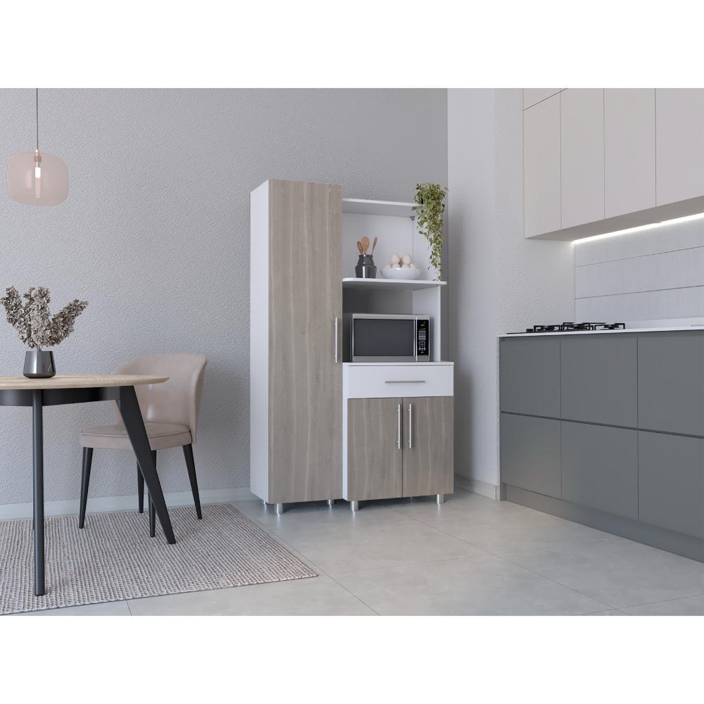 Alacena Panter, Blanco Duqueza y Bardolino, con espacio para microondas puertas abatibles y un cajon