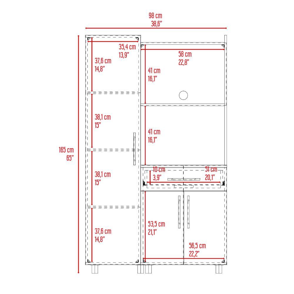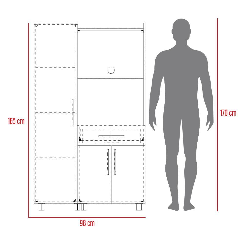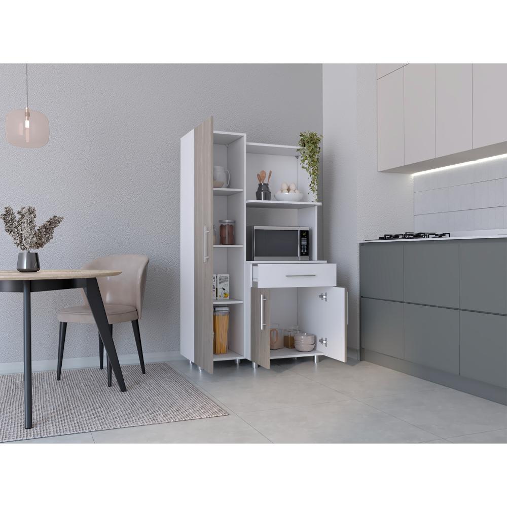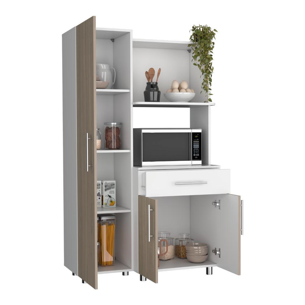Alacena Panter, Blanco Duqueza y Bardolino, con espacio para microondas puertas abatibles y un cajon