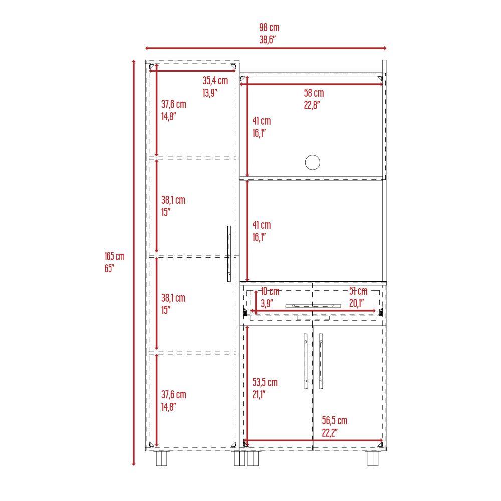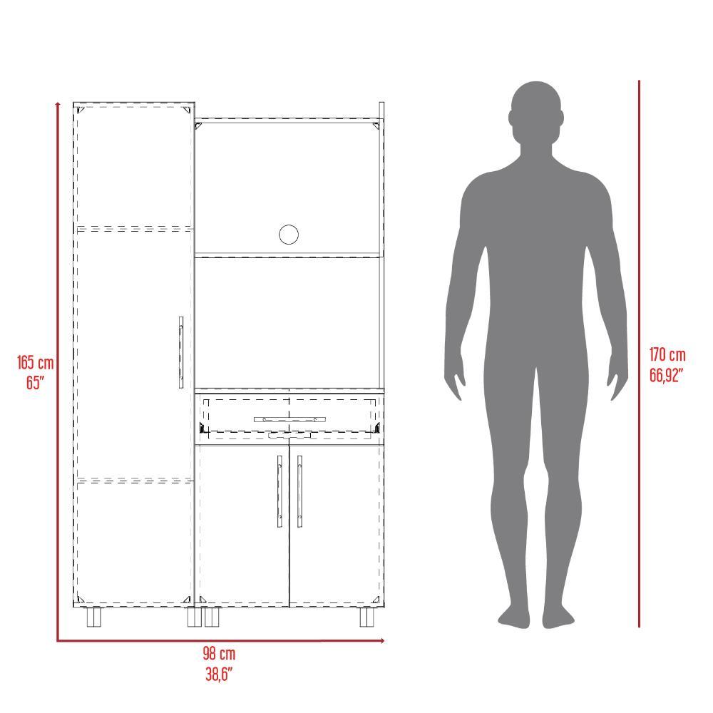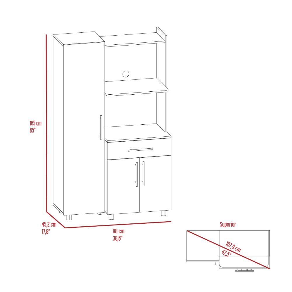 Alacena Panter, Blanco Duqueza y Plata Oscuro, con espacio para microondas puertas abatibles y un cajon
