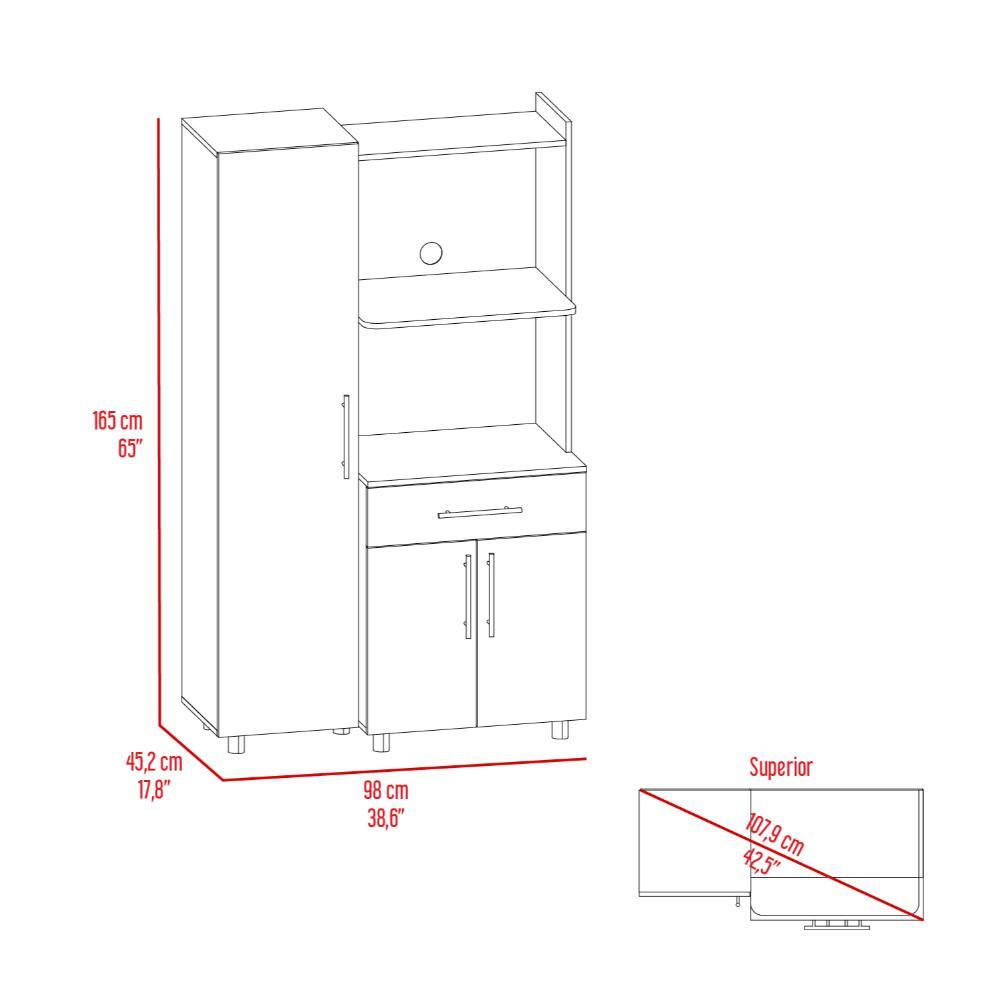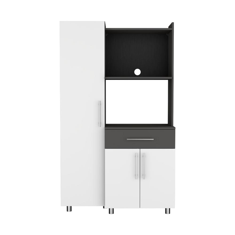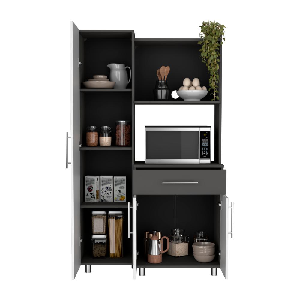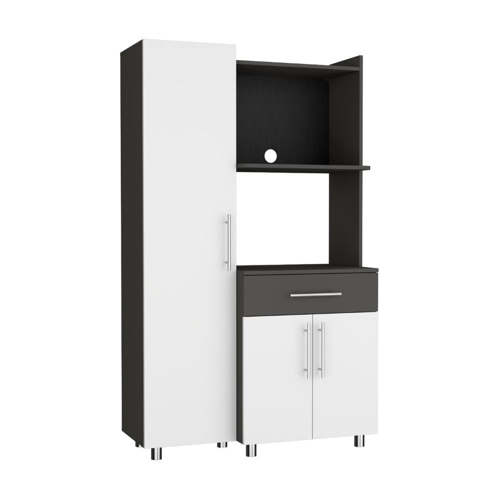 Alacena Panter, Plata Oscuro y Blanco Duqueza, con espacio para microondas puertas abatibles y un cajon
