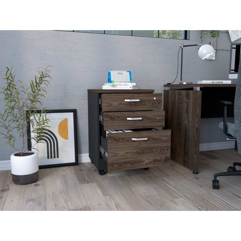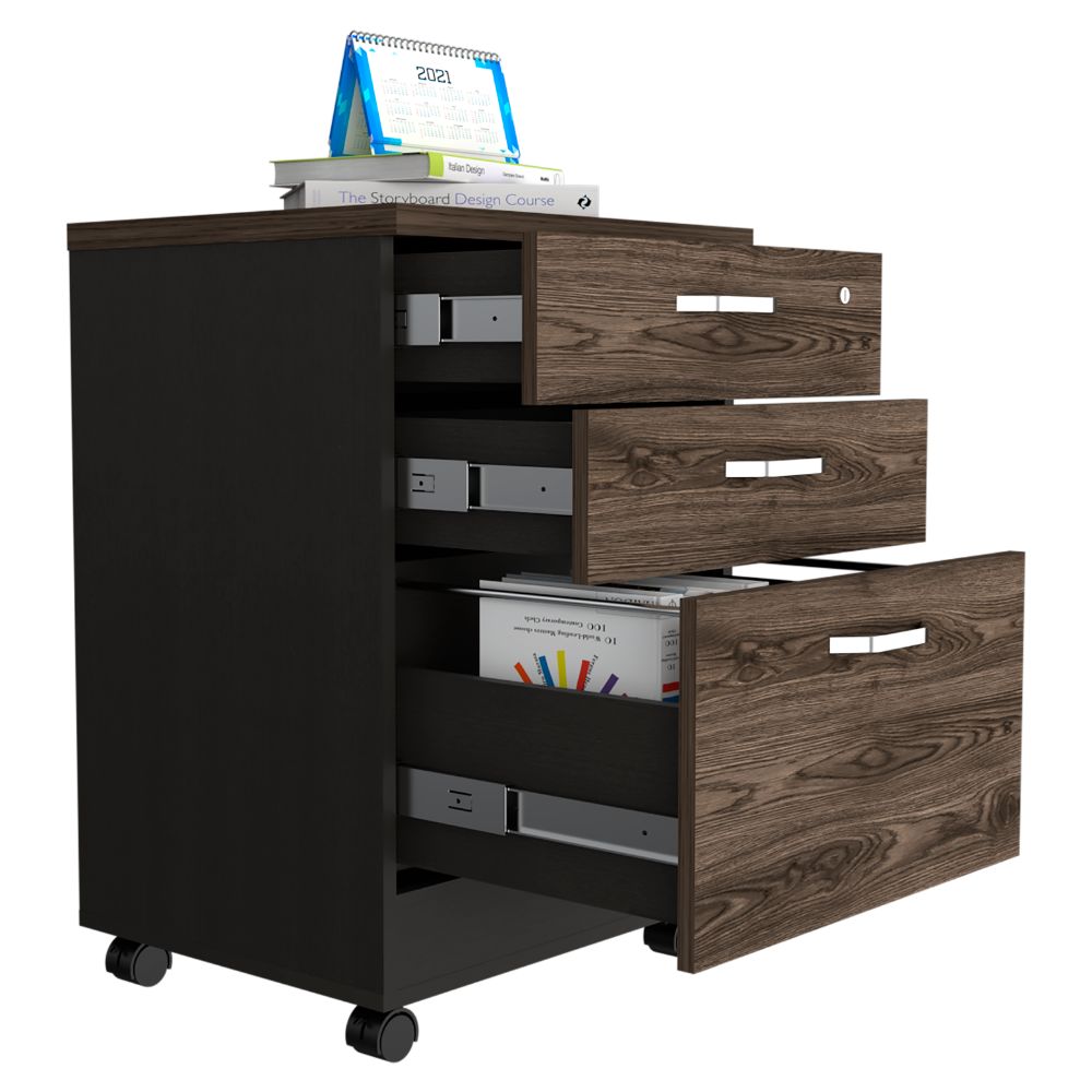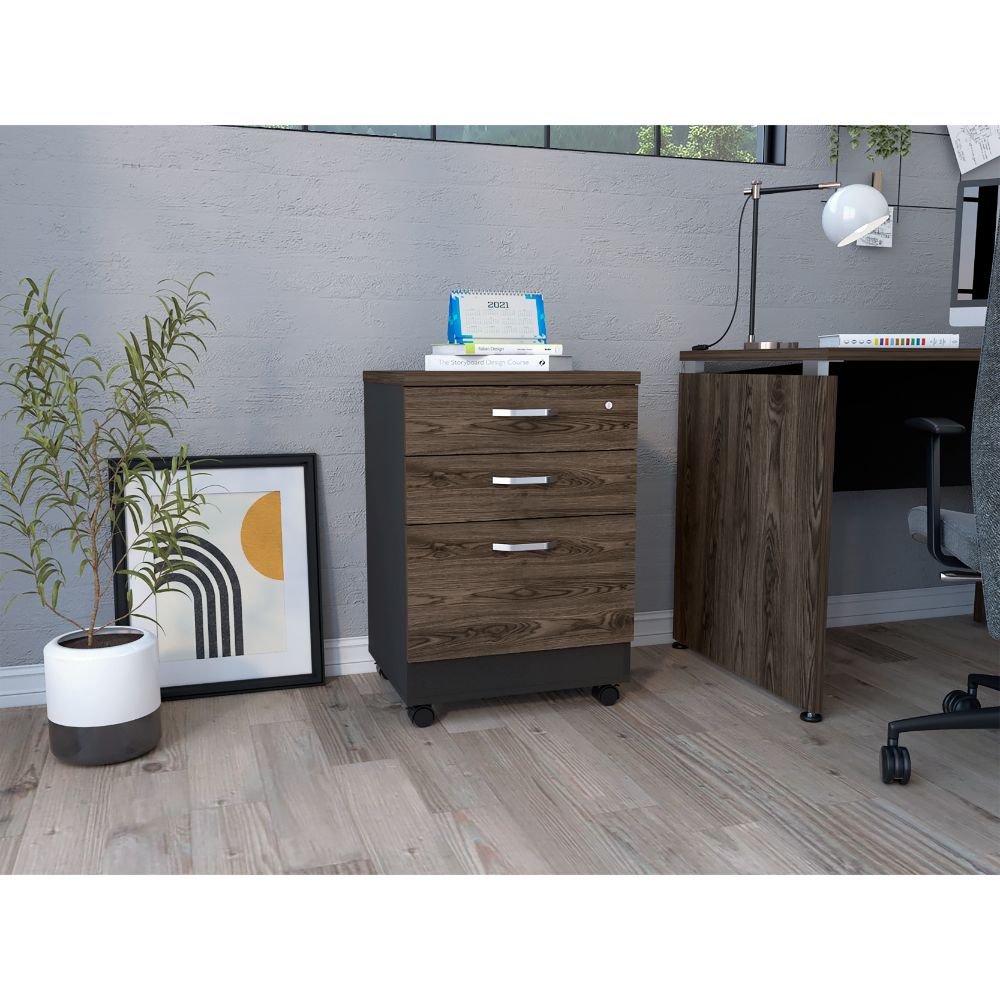 Archivador, con gran capacidad de almacenamiento, tres cajones, un cajon con cerradura, diseño moderno.