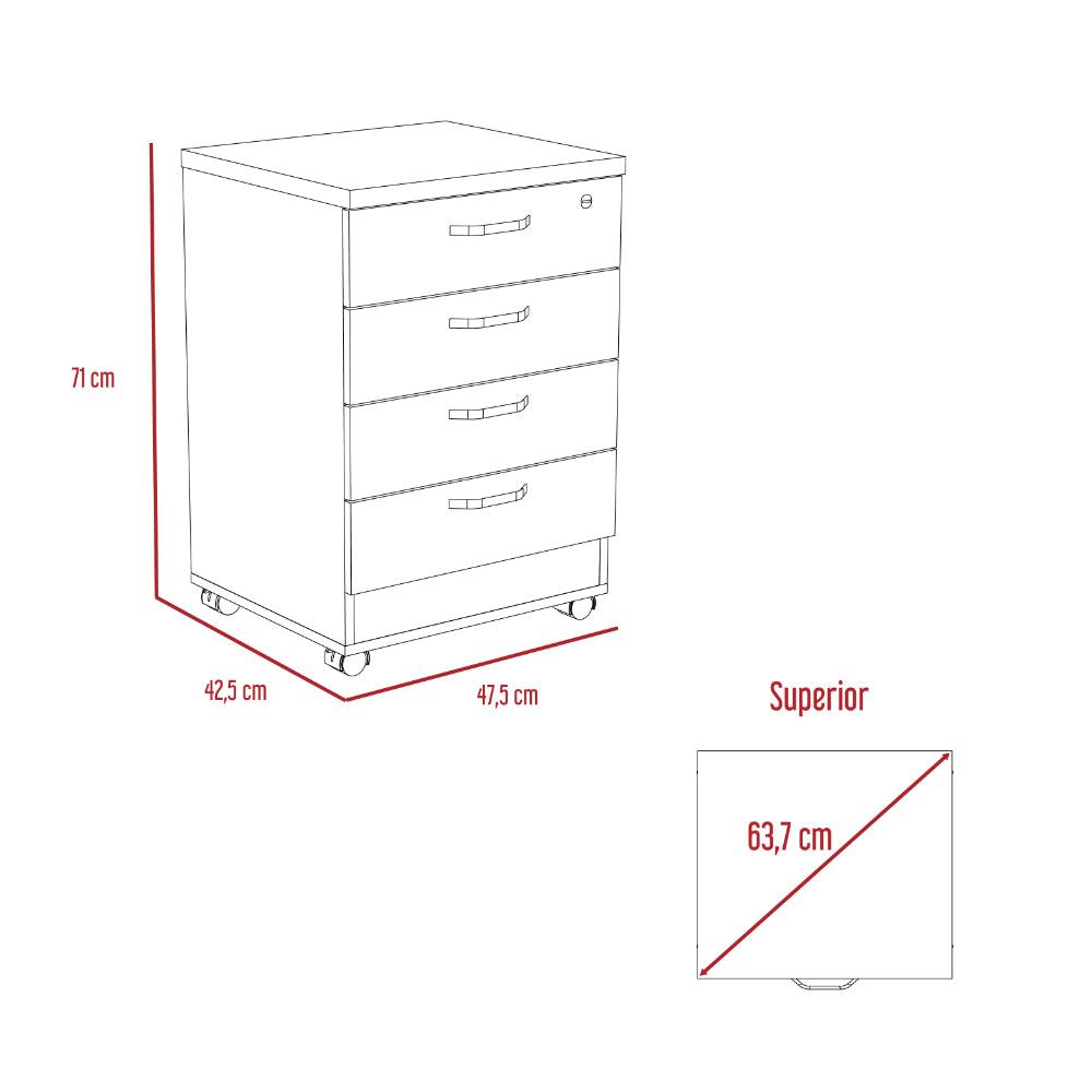 Archivador, con gran capacidad de almacenamiento, cuatro cajones, un cajon con cerradura, diseño moderno