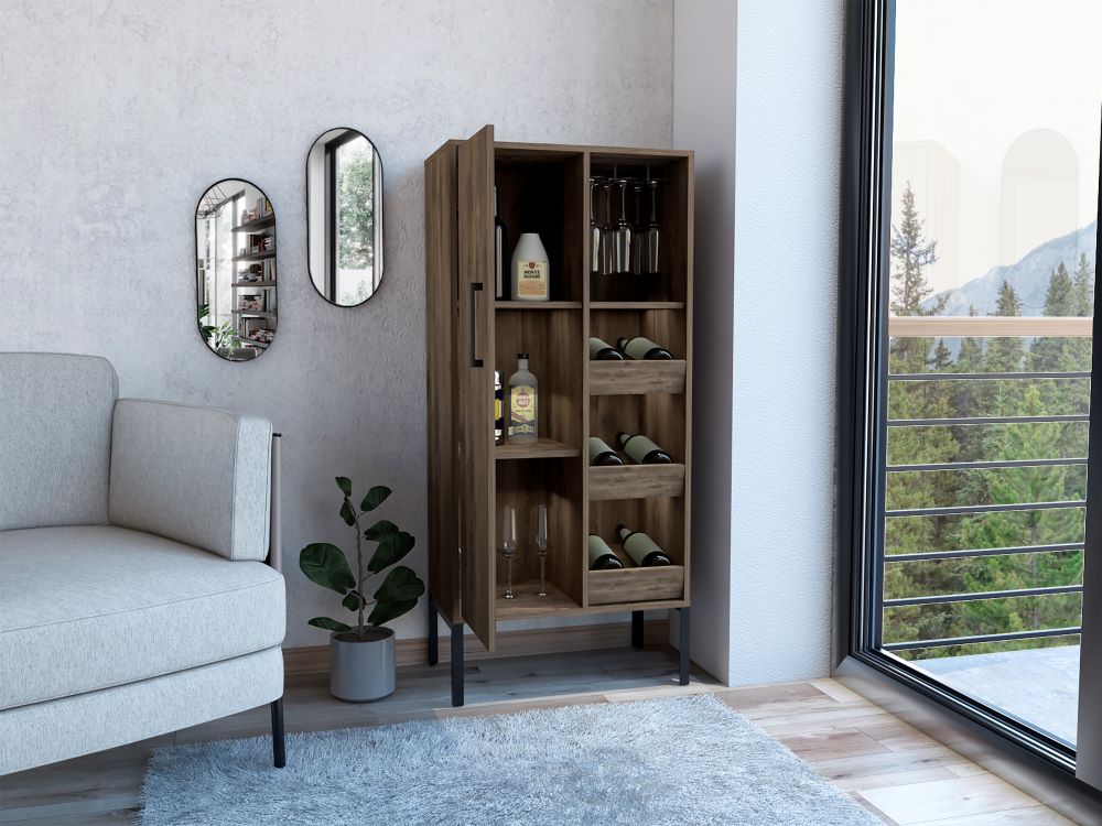 Bar Sory, Nogal, con Amplio Espacio Para Almacenamiento de Botellas