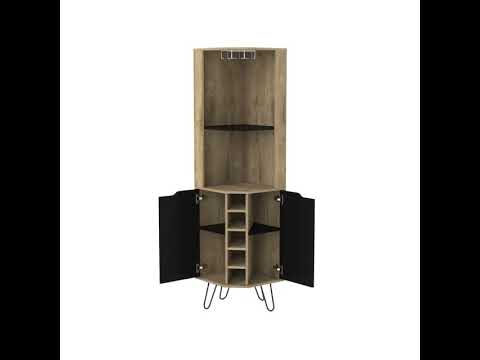 Bar Esquinero Cleo, Café Claro y Wengue, 2 Puertas con Con Espacio Para Porta Vasos y Botellas