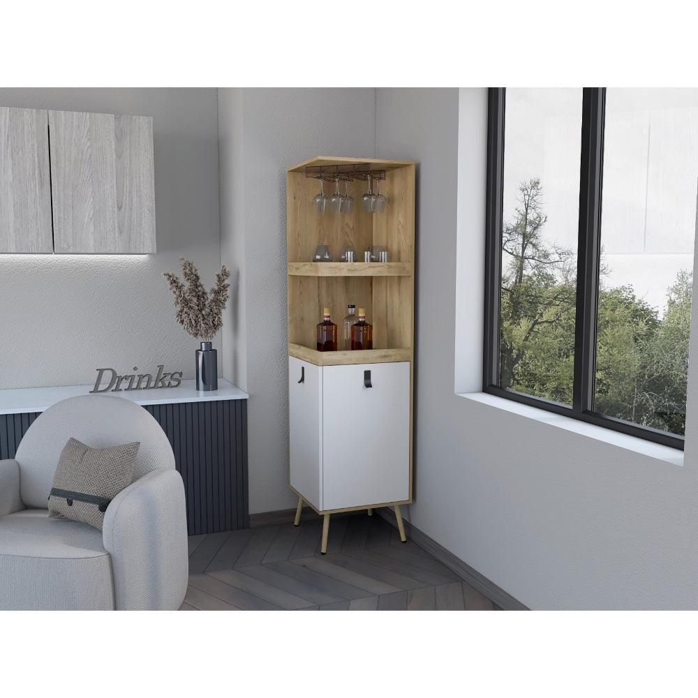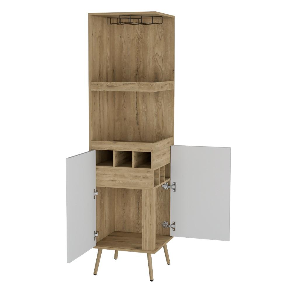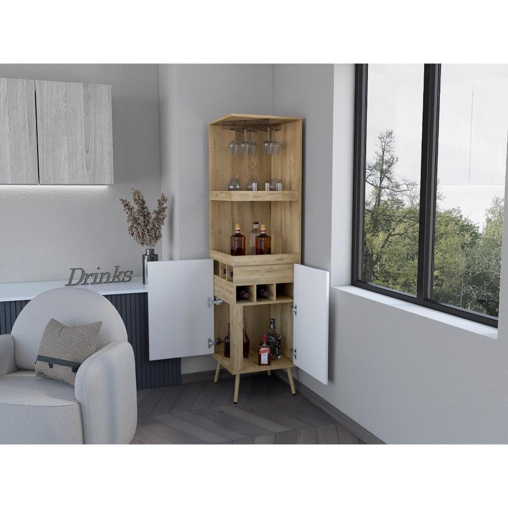 Bar Esquinero Huna, Macadamia y Blanco, con espacio superior para copas de vino