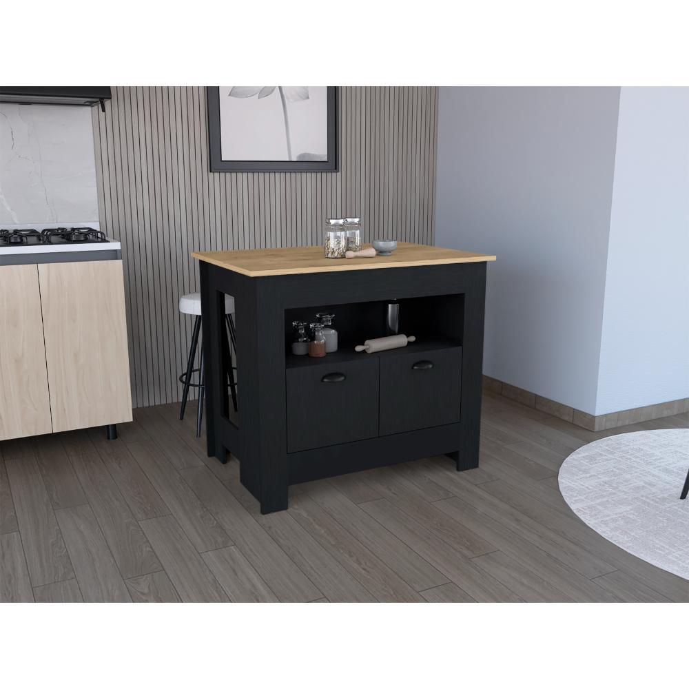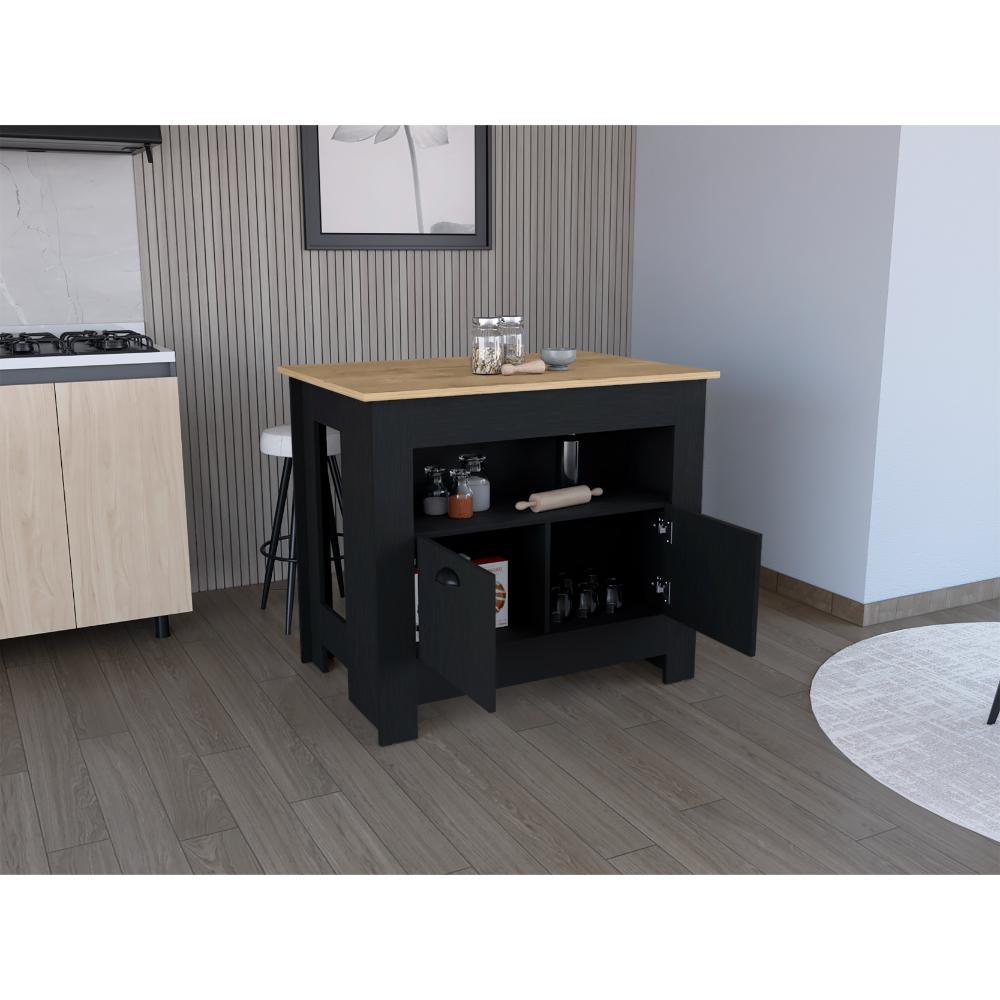 Barra de Cocina Arlet, Wengue y Macadamia, con amplios espacios de almacenamiento