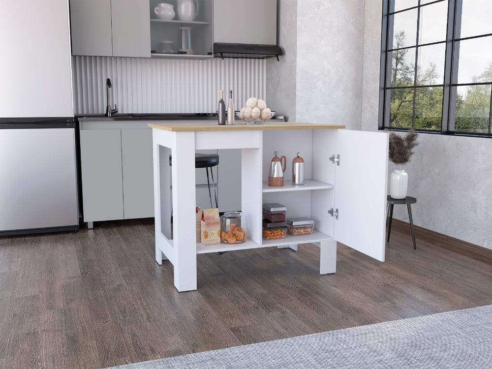 Barra de Cocina Atenat, Blanco y Macadamia, con amplia superficie en la mesa