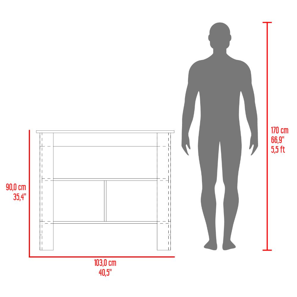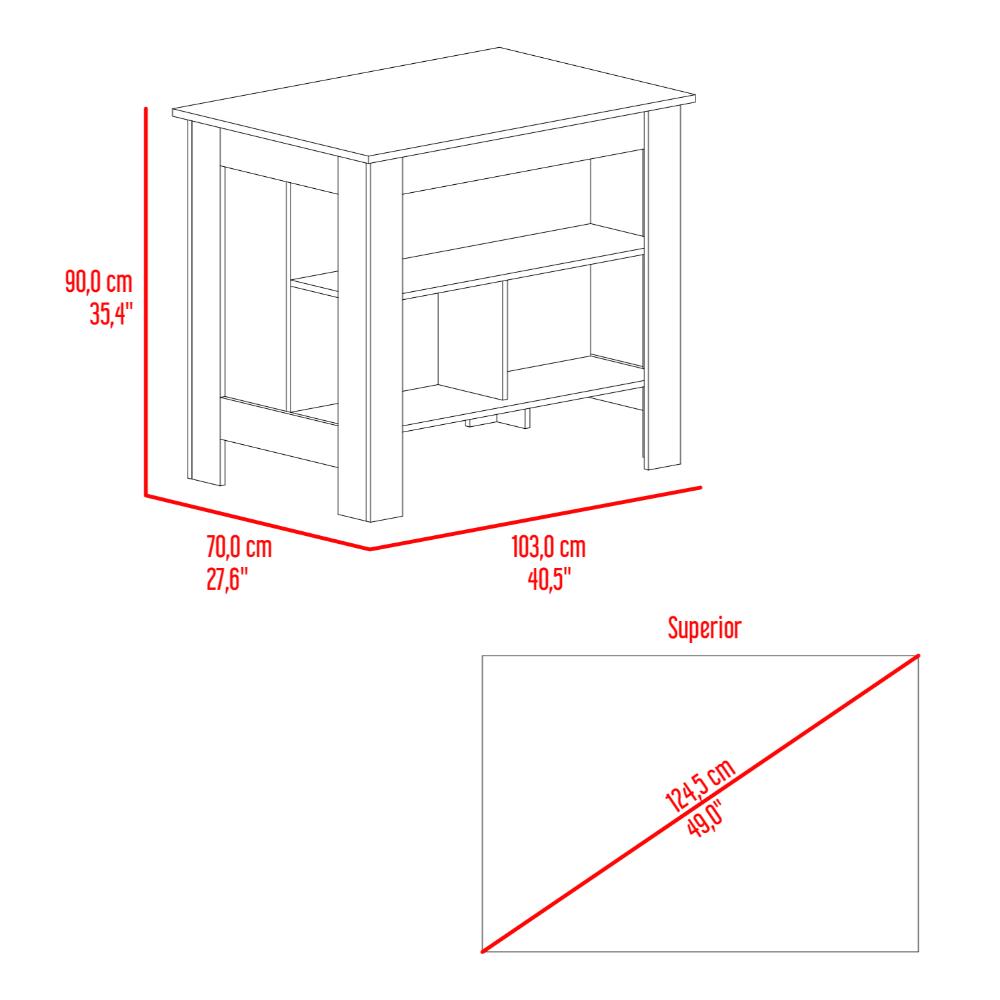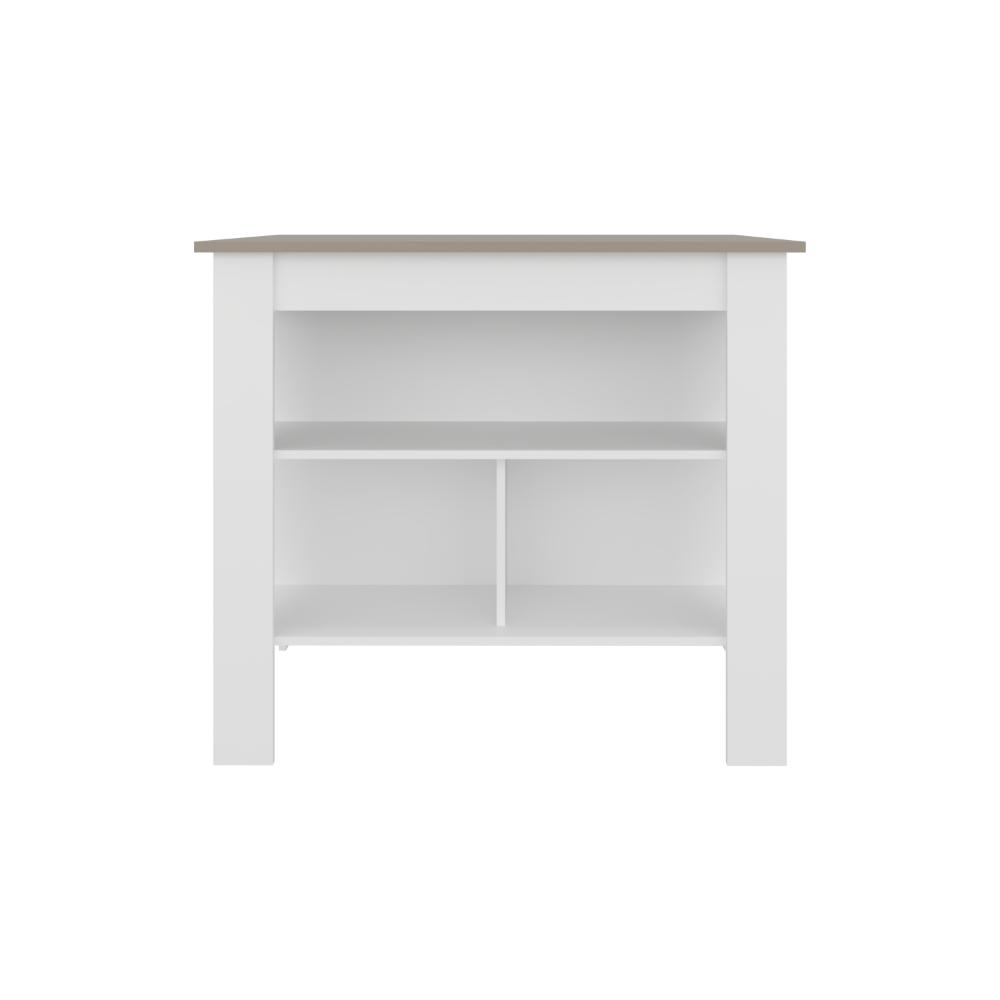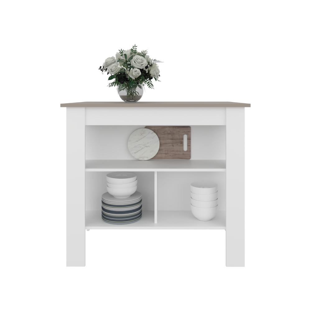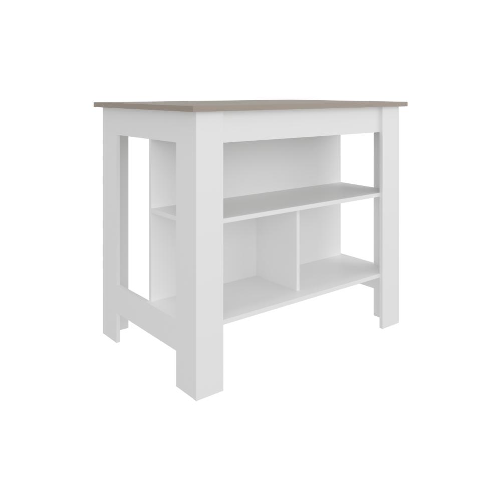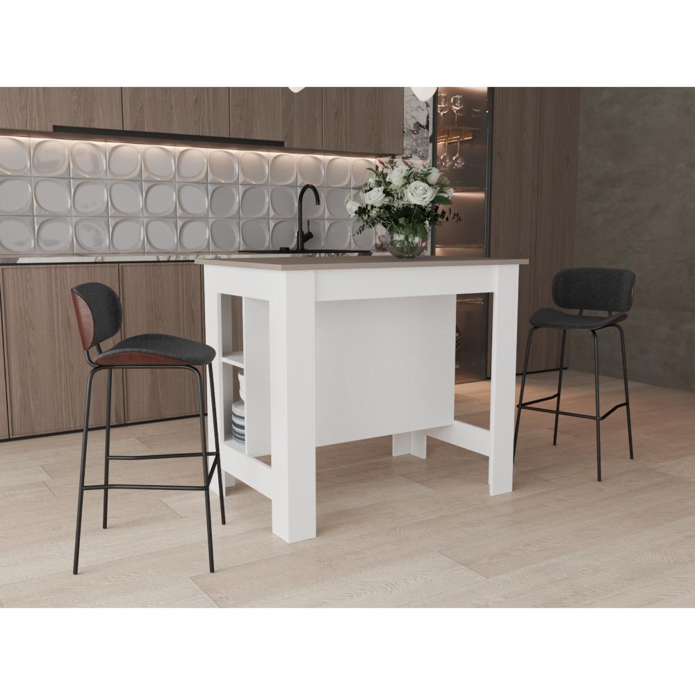 Barra de Cocina Burton, Blanco Duqueza y Cocoa, con amplia superficie en la mesa