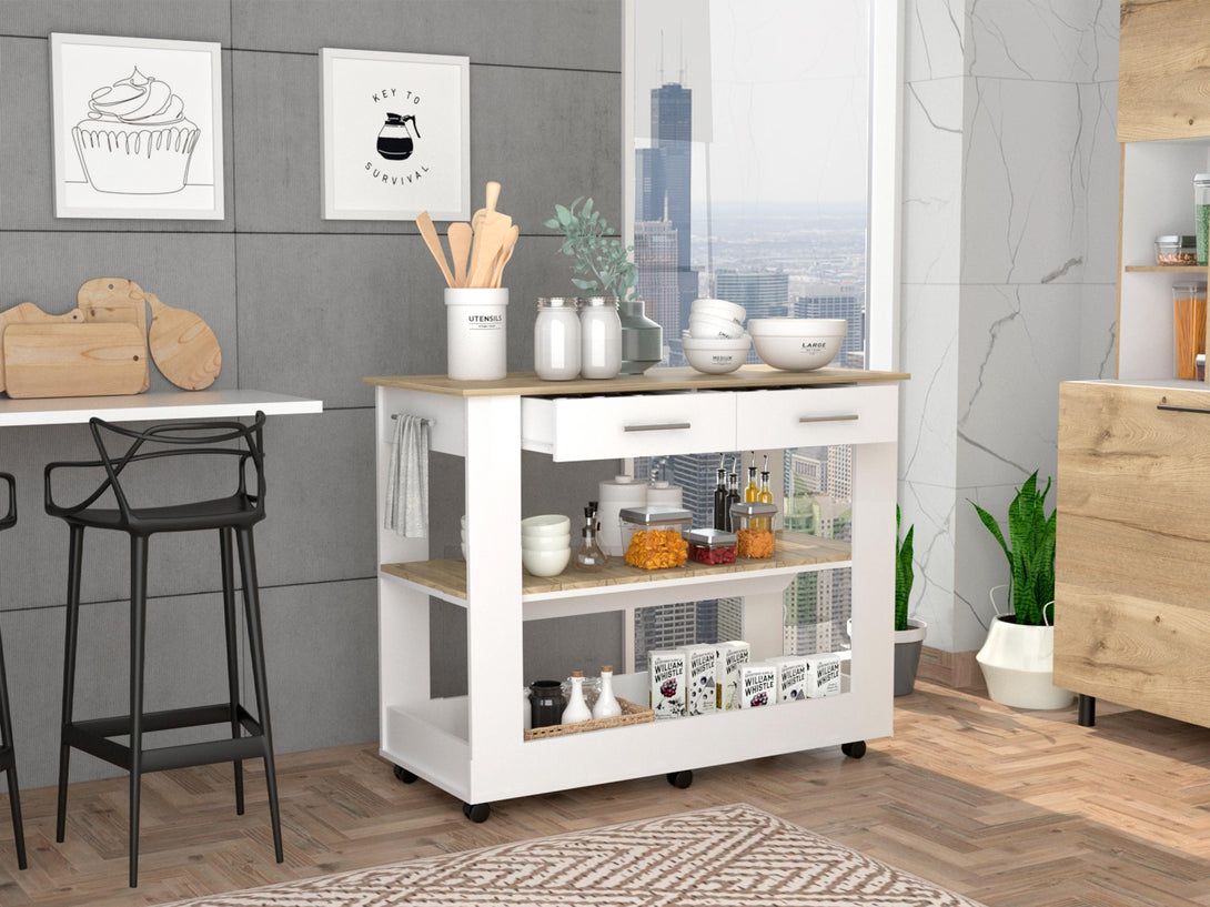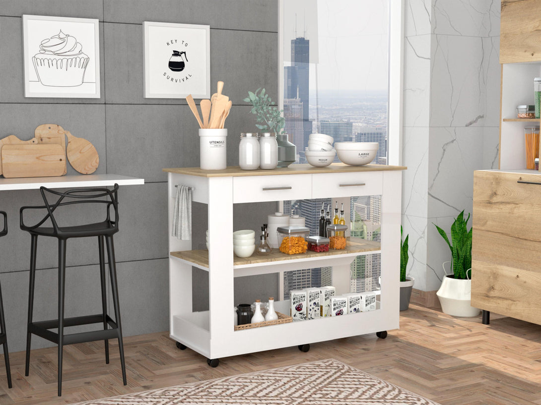 Barra de Cocina Cala, Blanco Nevado y Café claro, con amplia superficie en la mesa ZF
