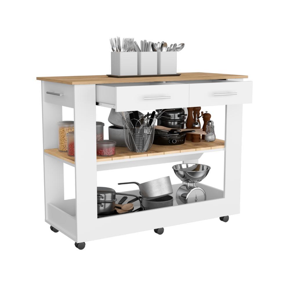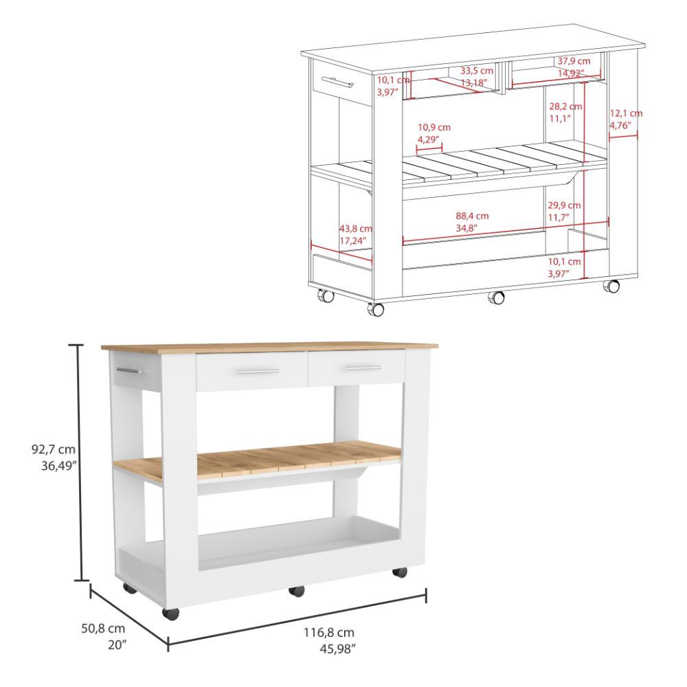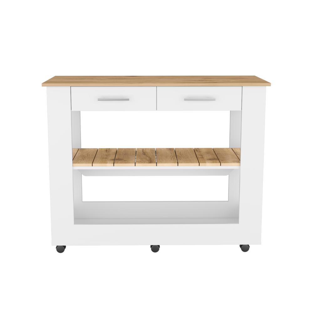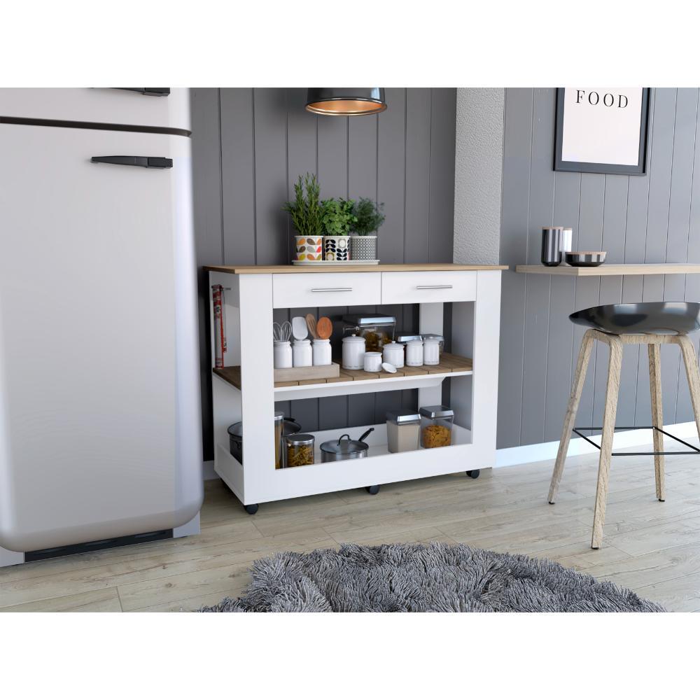 Barra de Cocina Cala, Blanco y Café claro, con amplia superficie en la mesa