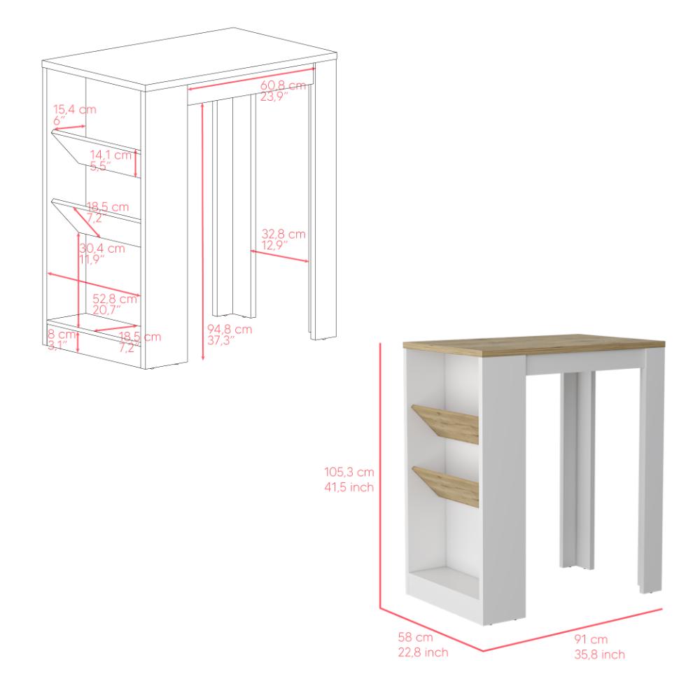 Barra de Cocina Celeste, Blanco y Macadamia, con Entrepaños inclinados para Ubicar Botellas