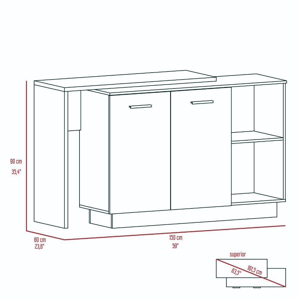 Barra de Cocina Eris, Café Claro y Blanco, con Dos Puertas Batientes