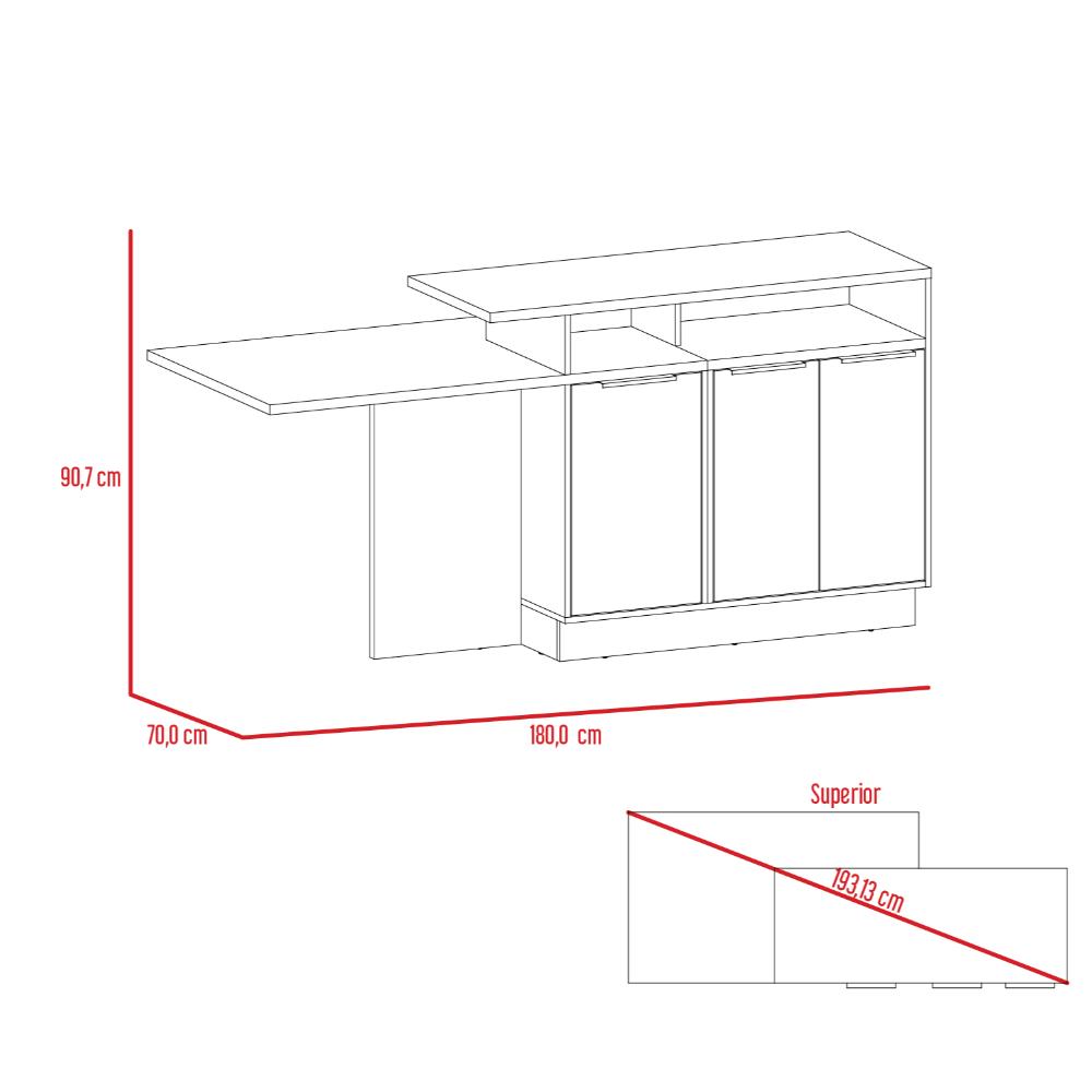 Barra de Cocina Larry, Café Claro y Grafito, con Amplia Superficie ZF
