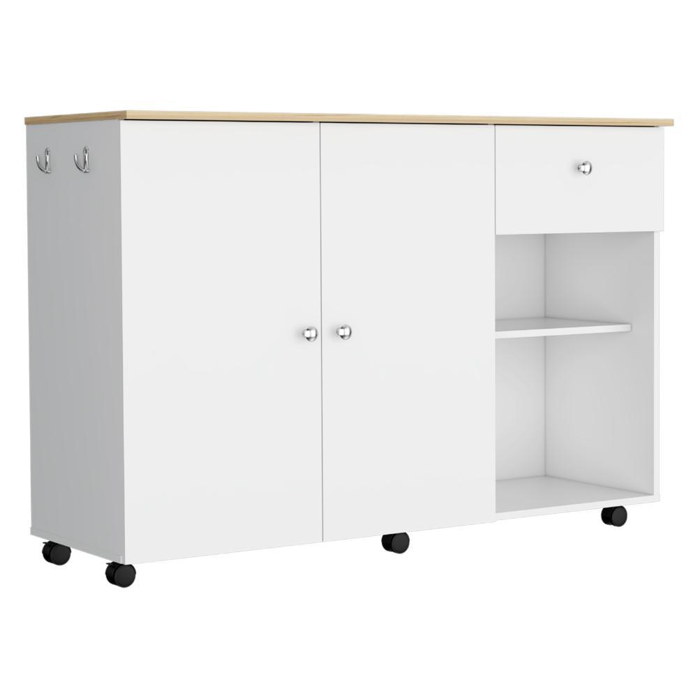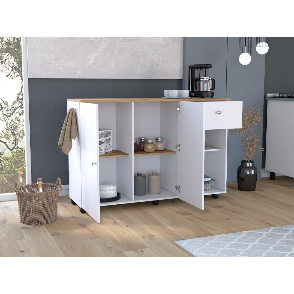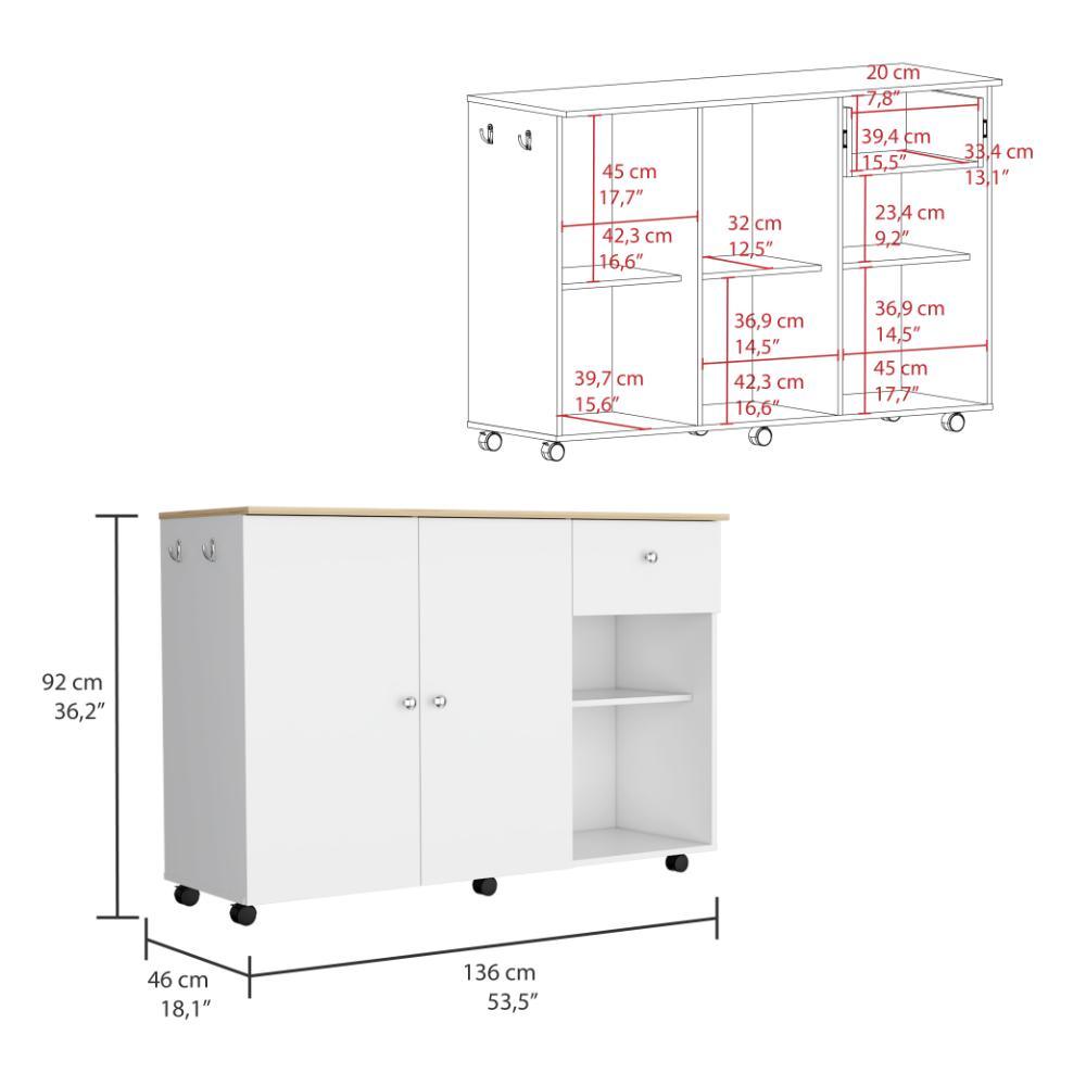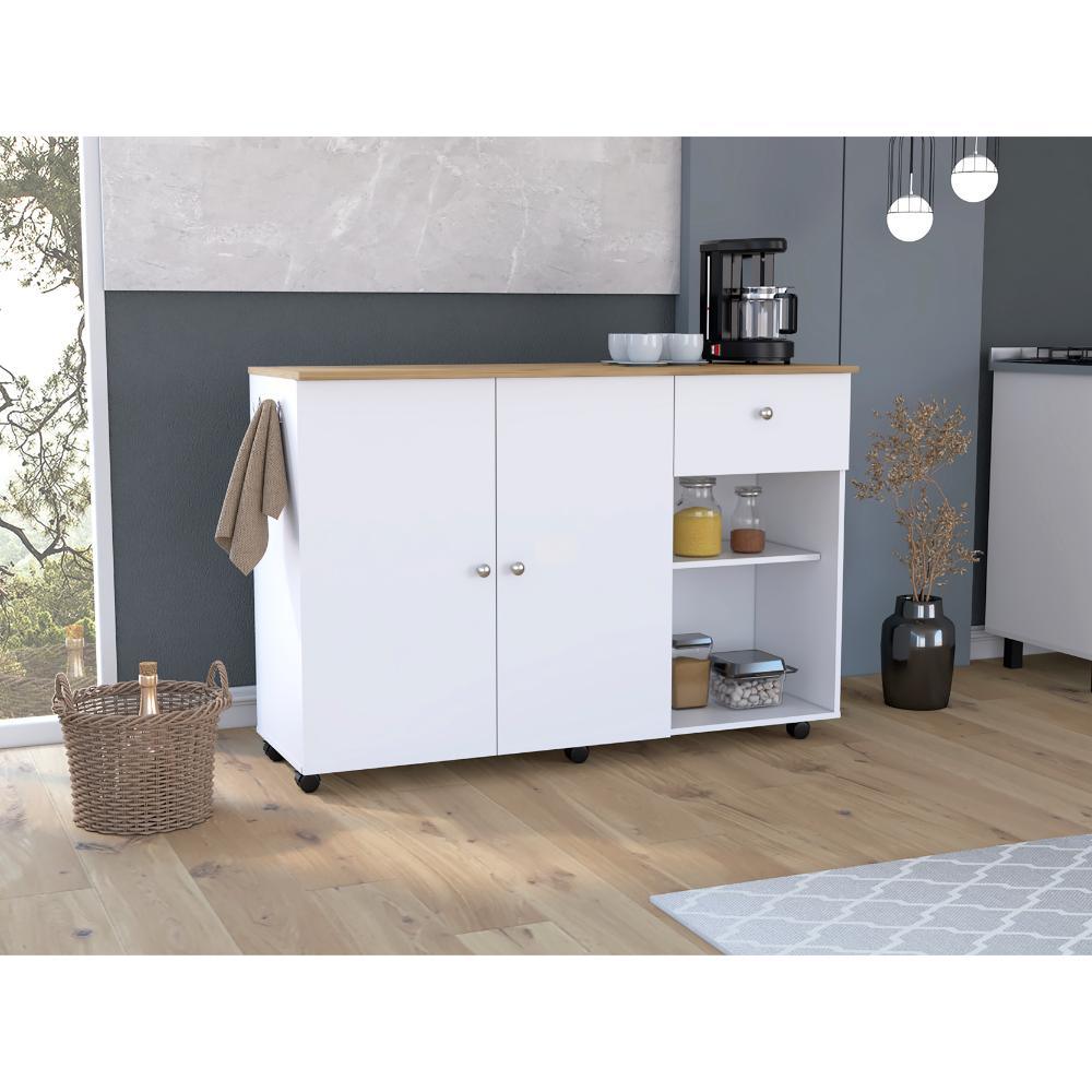Barra de Cocina Movix, Blanco y Macadamia, con dos entrepaños internos para almacenamiento