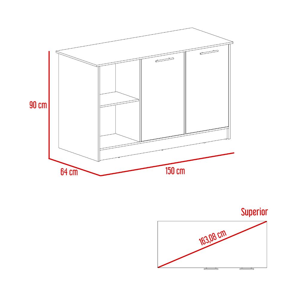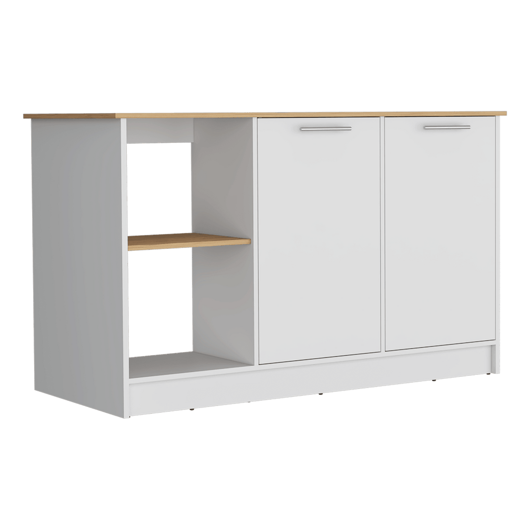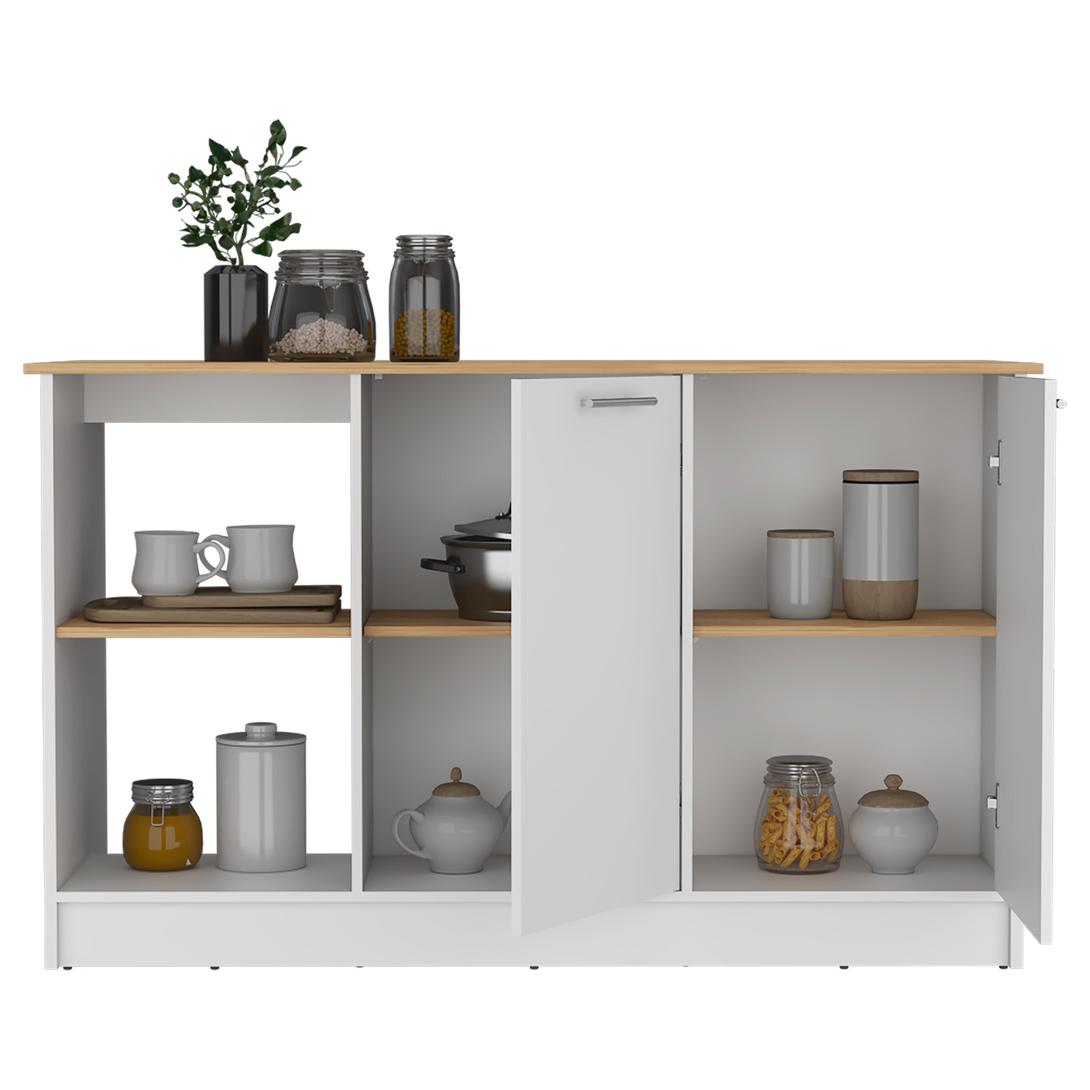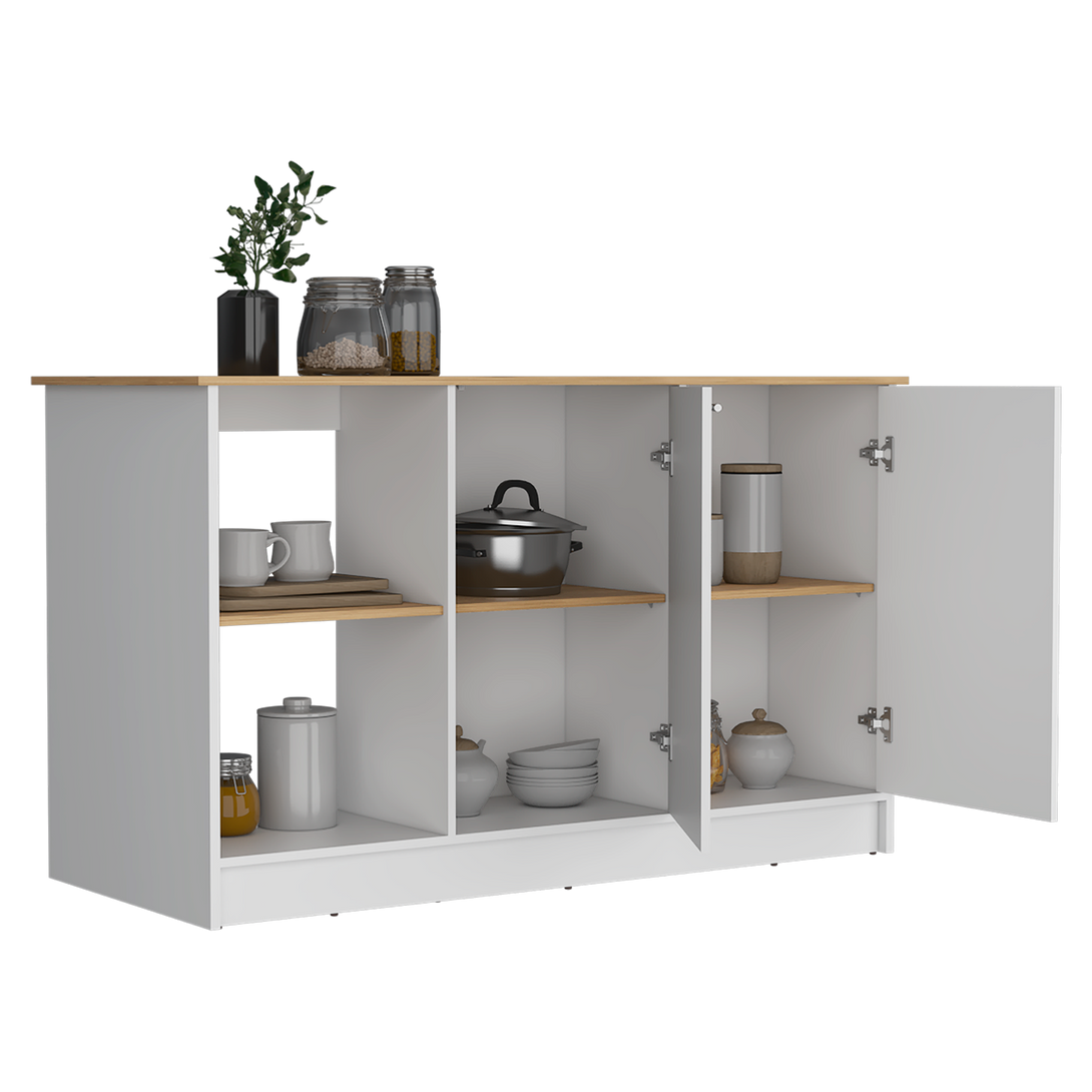 Barra de Cocina Samara, Blanco y Macadamia, con Tres Entrepaños