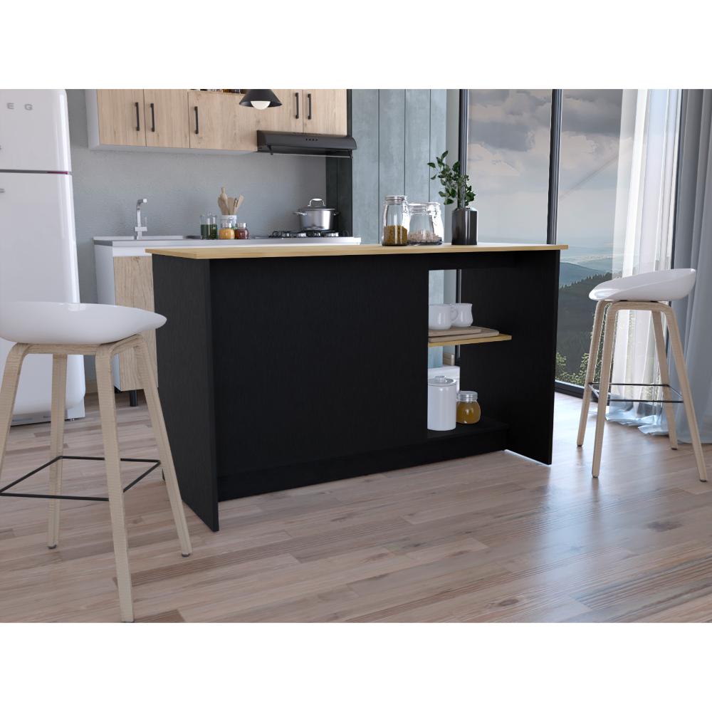 Barra de Cocina Samara, Wengue y Macadamia, con Tres Entrepaños