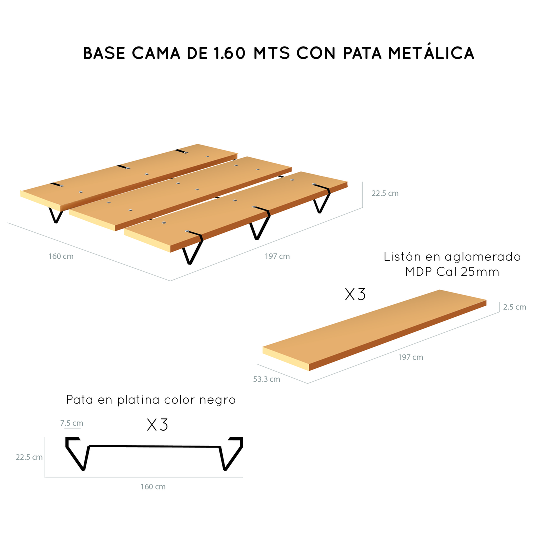 Elaborada en 3 listones de 43,3 x 197 en Madera MDP cal 25mm y 3 soportes en platina color negro