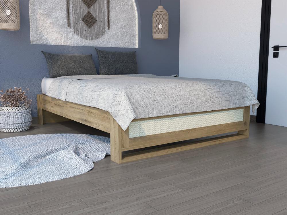 Base Cama Doble Natura, Macadamia, con tendido de tablas