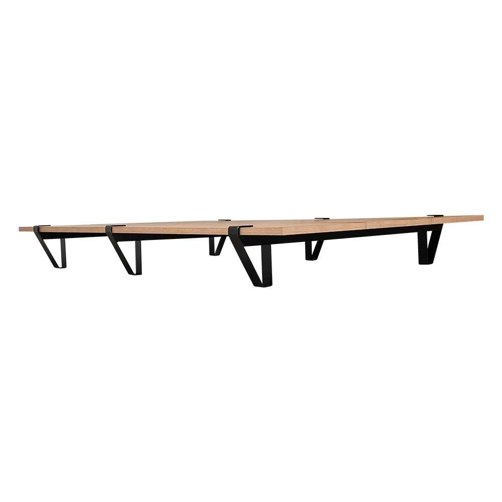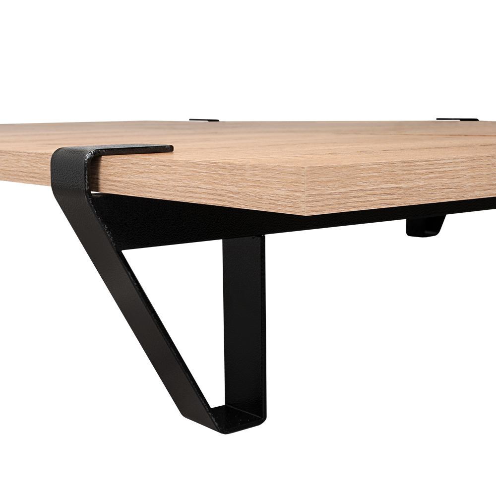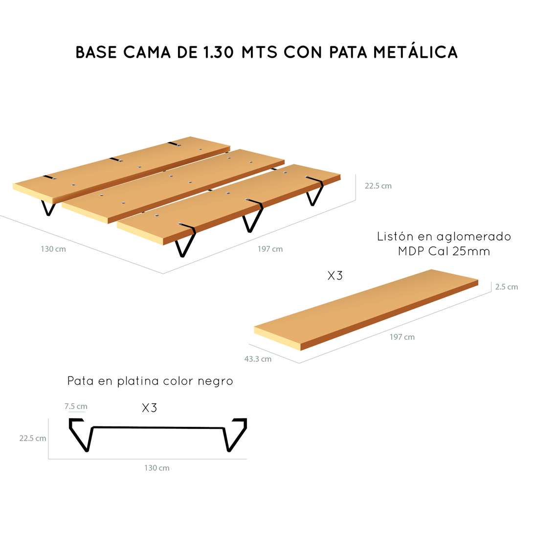 Elaborada en 3 listones de 53,3 x 197 en Madera MDP cal 25mm y 3 soportes en platina color negro