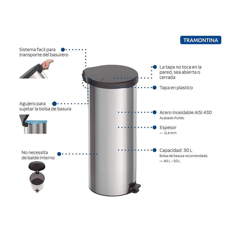 Basurero de Pedal,tapa plastica negra Linea New 30 Lt