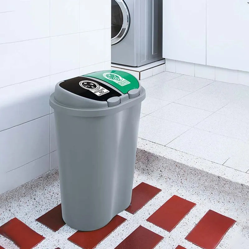 Basurero Manejo De Residuos 50 Litros Doble Gris