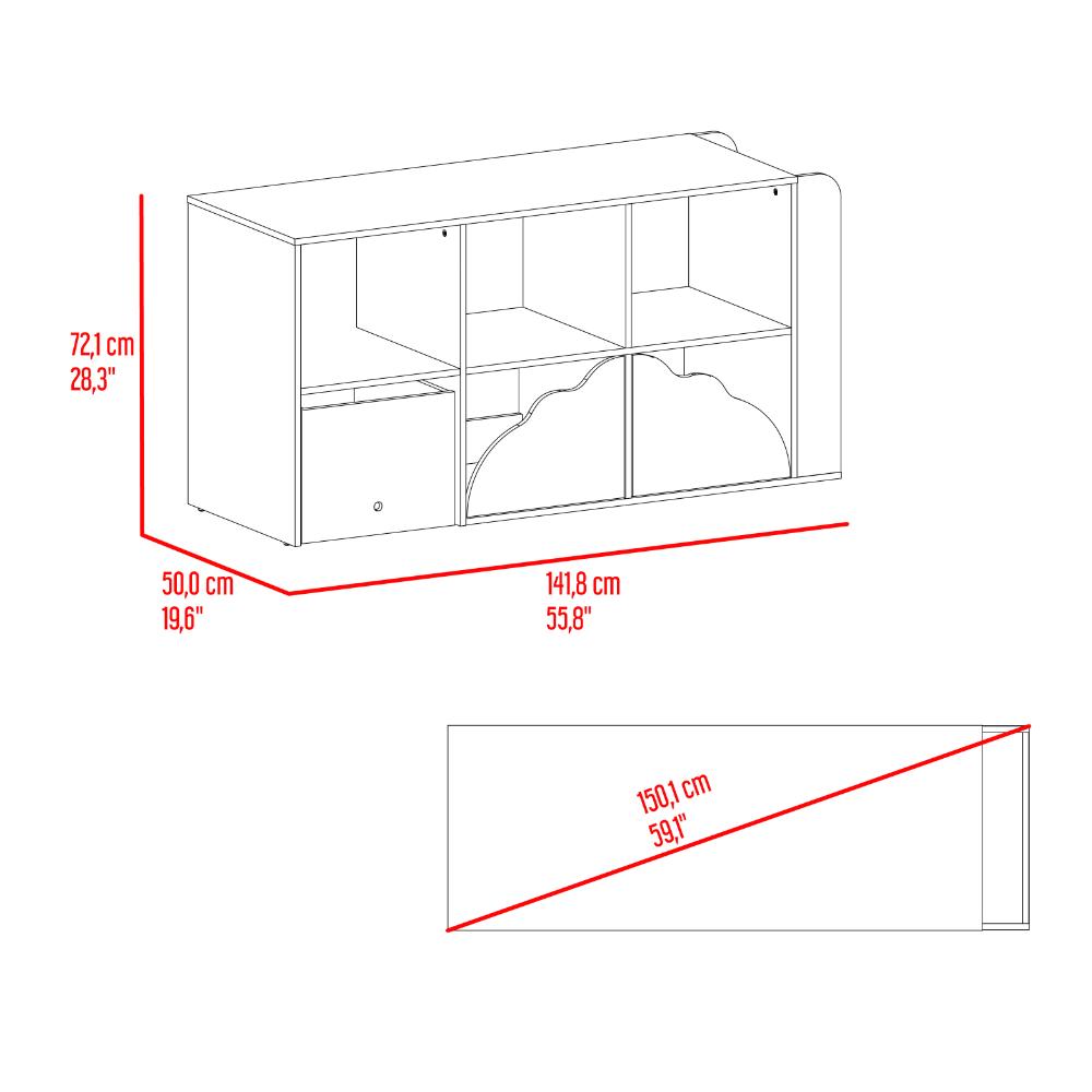 Biblioteca a Piso , con entrepaños para ubicar libros y/o juguetes, amplios espacios de almacenamiento, cajón movible con manija de lazo.
