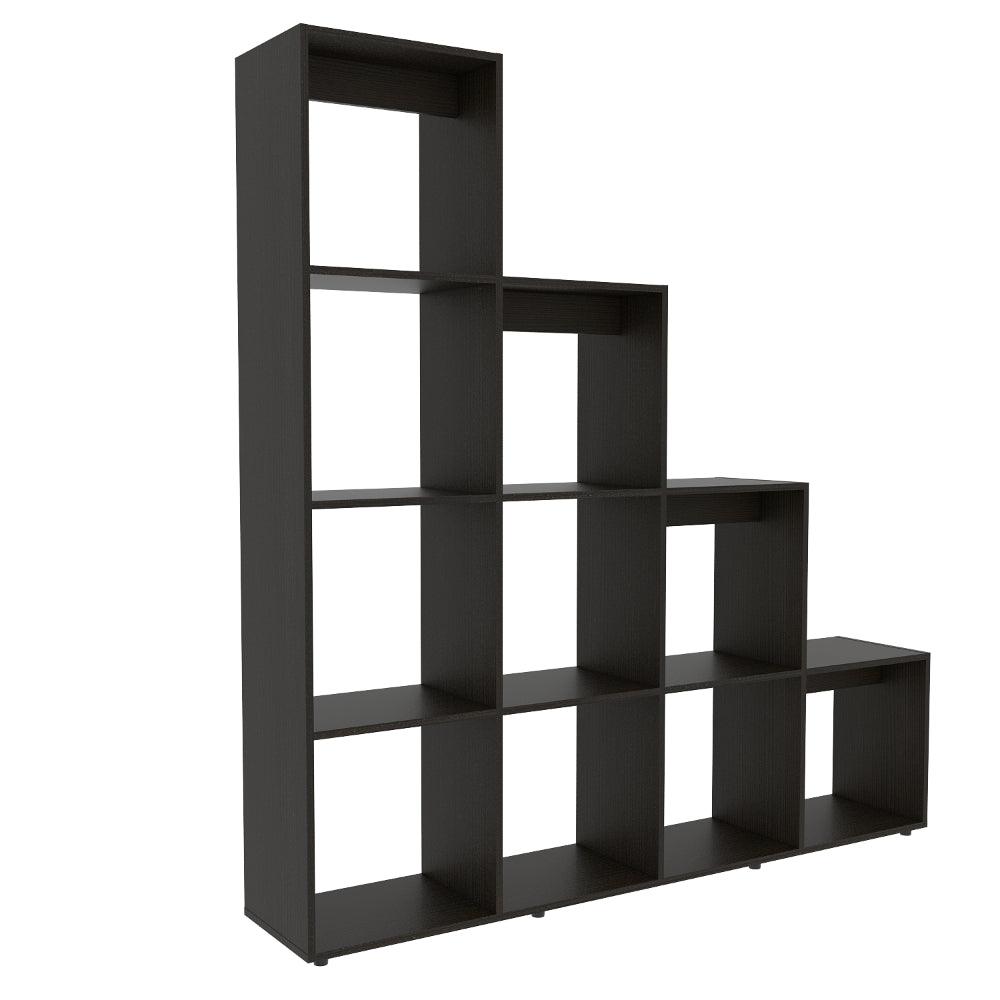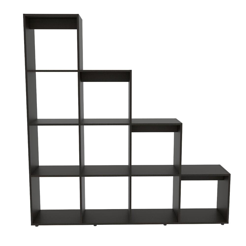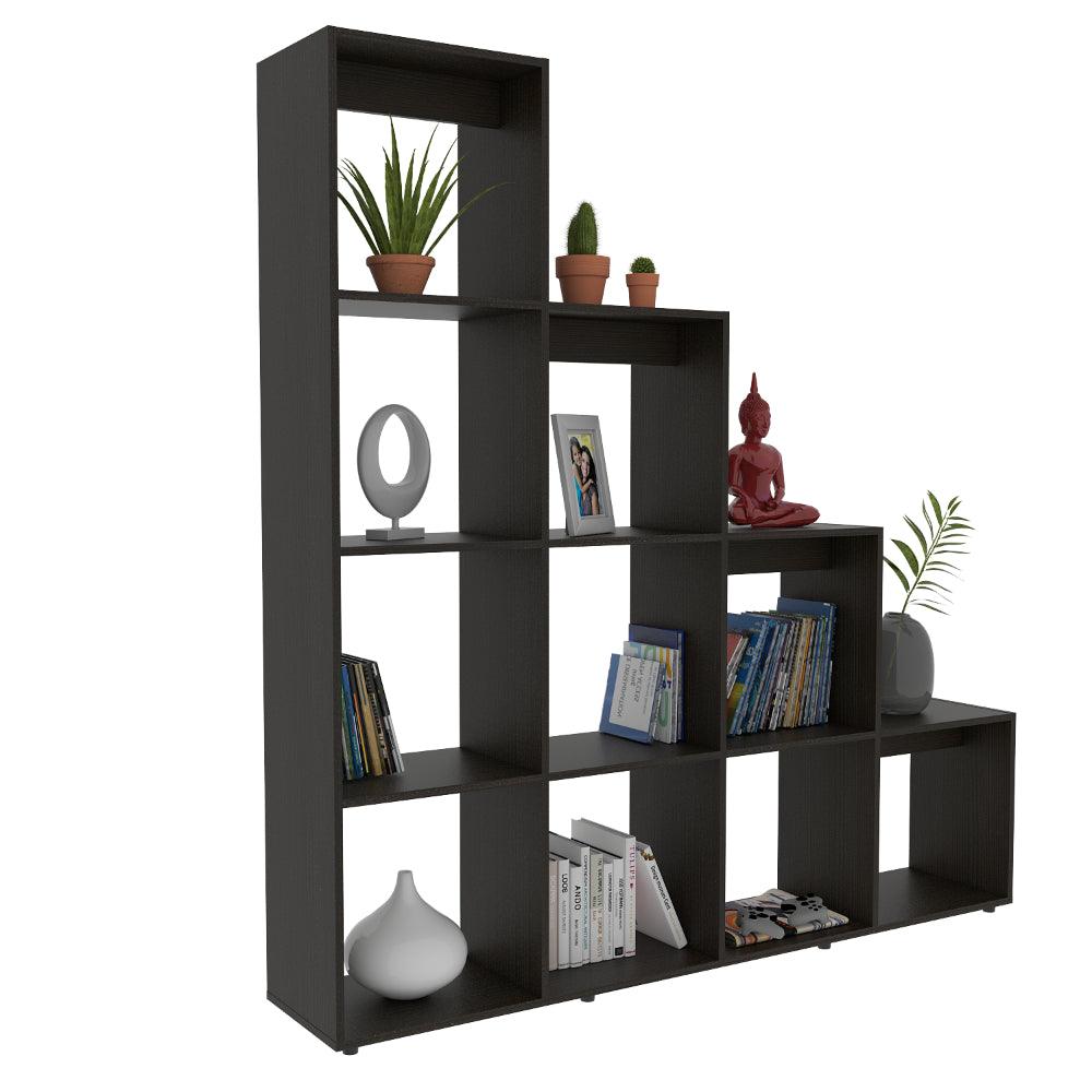 Biblioteca Escalera Ascher, Wengue, con Variedad de Espacios Para Libros y Artículos Decorativos