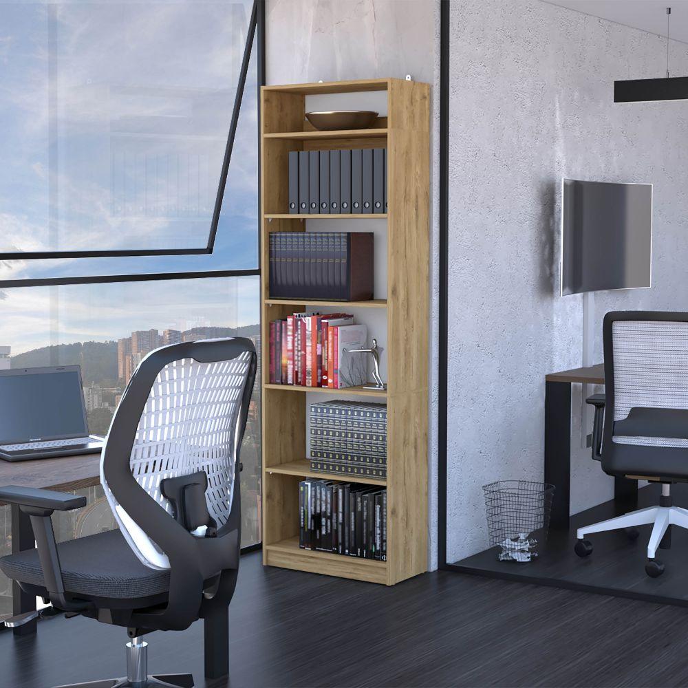 Biblioteca Home, Macadamia y Blanco Cartón, con Cinco Entrepaños incluye complemento