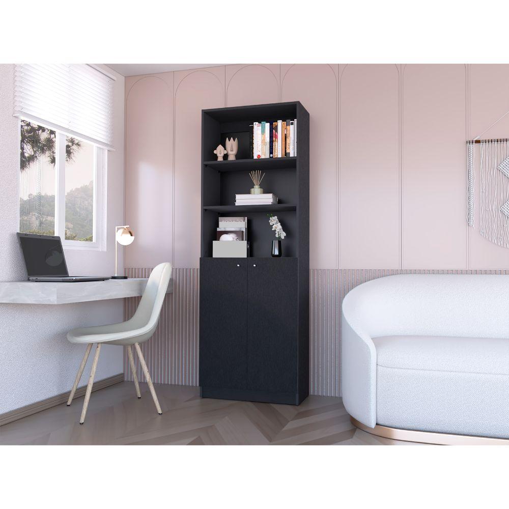 Biblioteca, con cinco entrepaños para ubicar libros y elementos decorativos y dos Puertas abatibles