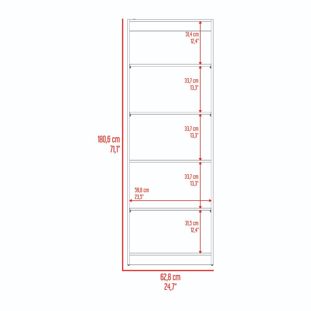 Biblioteca, con cinco entrepaños para ubicar libros y elementos decorativos.