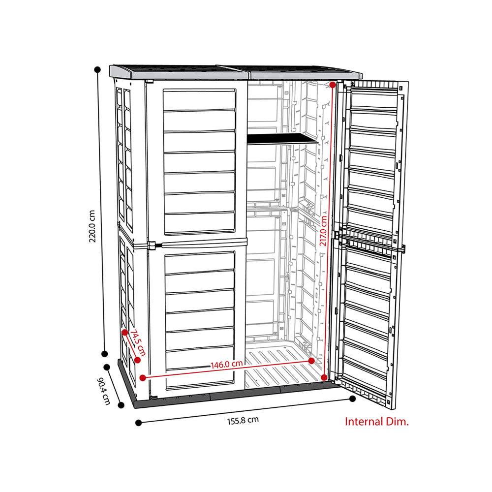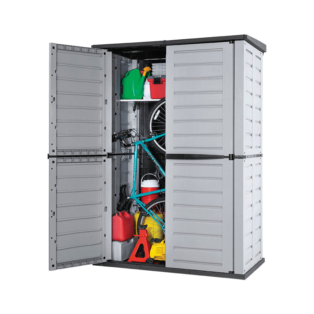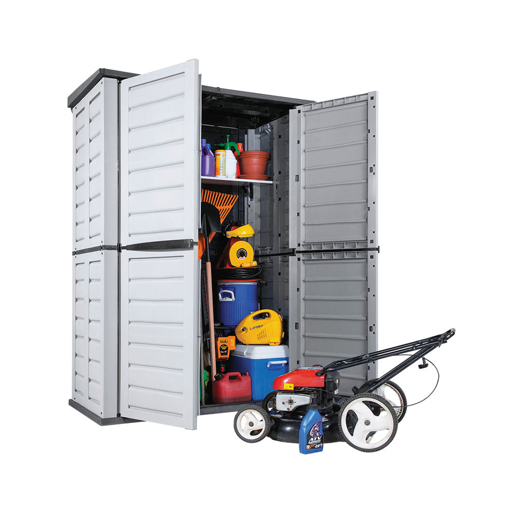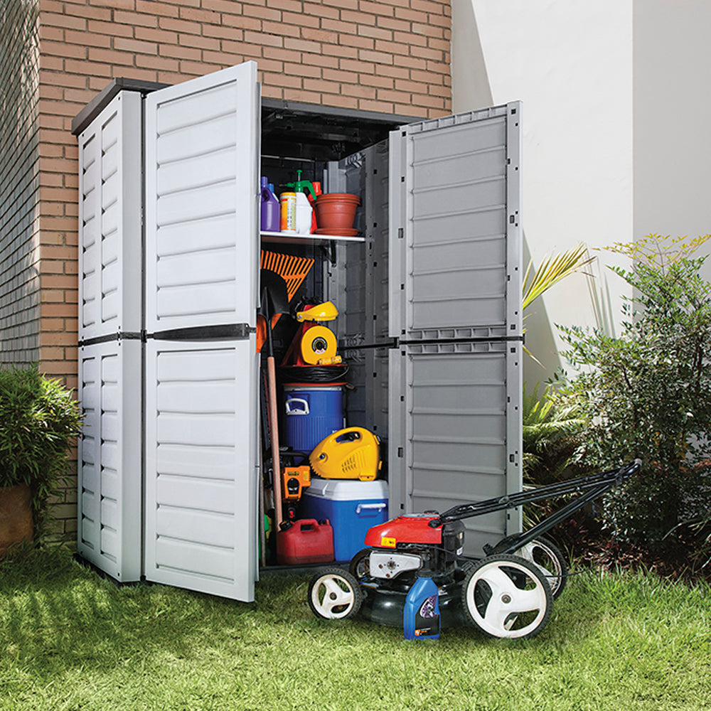 Gran solución de almacenamiento para uso al aire libre. Se puede poner en el patio, terraza o en el interior de un garaje.Ideal para guardar maquinaria y herramientas de jardín, muebles de patio, hieleras, botes de basura, bicicletas y otros artículos de uso exterior.Incluye un estante de plástico para artículos más pequeños y ligeros, resiste hasta 12 Kg. Resistente y duradero, no requiere mantenimiento. Fácil de armar, fácil de limpiar. Beneficios Levantador de tapa neumatica para ajuste milimetrico. Ideal para espacios exteriores como jardines, balcones y terrazas Máximo almacenamiento en un espacio optimizado. Bloqueable Fácil de limpiar. Amplio espacio para almacenar herramientas y equipos de jardín. Materiales duraderos que resisten el clima exterior. Diseño robusto y seguro que protege tus pertenencias. Fácil montaje y mantenimiento. Versátil para almacenar diversos tipos de artículos. Ayuda a mantener tu espacio exterior ordenado y organizado.