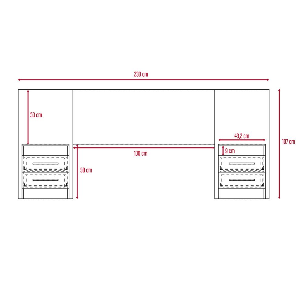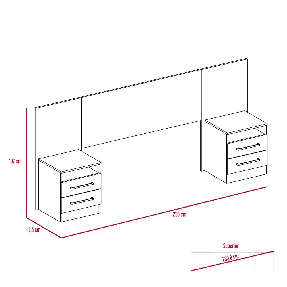 Cabecero, incluye dos mesas de noche con cuatro cajones multiusos