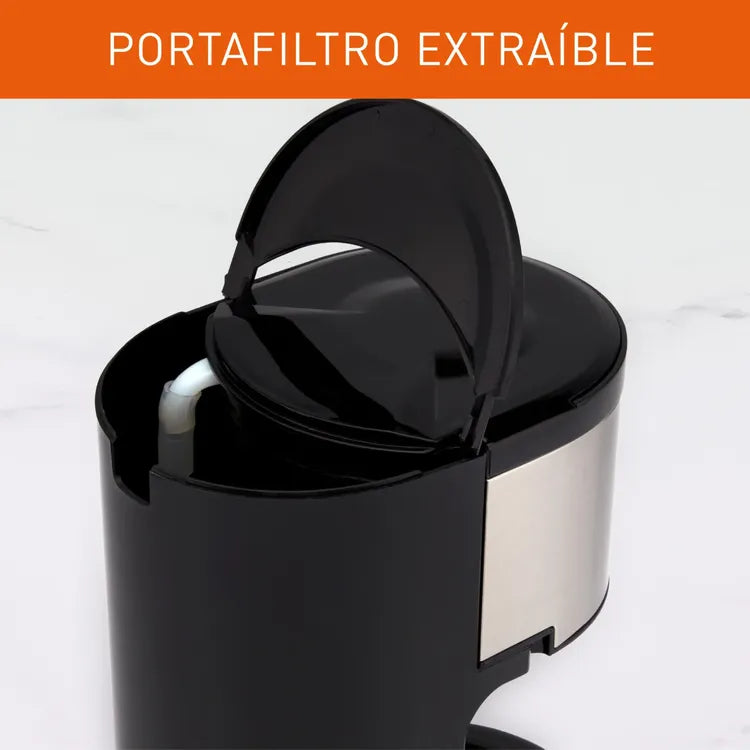 Cafetera Exterior en acero, Capacidad 1,2 Lts, Tipo de café Molido, Tanque de agua 6 Tazas, Apagado automático, Garantía 2 años.