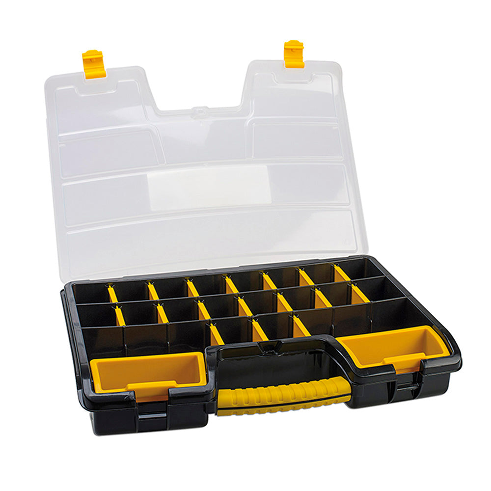 Gran Espacio de Almacenamiento: Con sus 460 milímetros de tamaño, esta caja ofrece espacio suficiente para guardar una amplia variedad de herramientas, piezas y accesorios de manera ordenada.