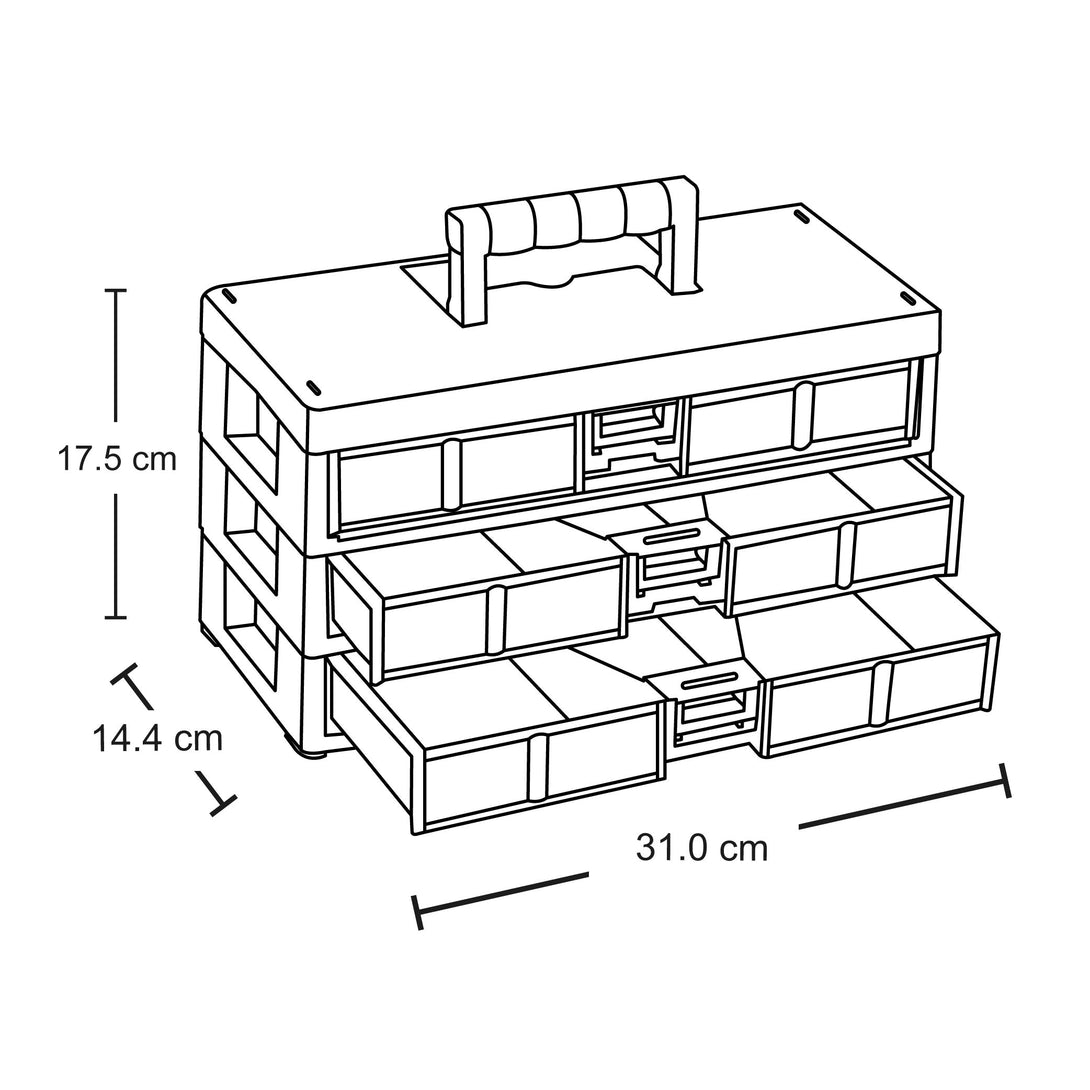 Orden y Clasificación: Las tres gavetas de 40 milímetros cada una ofrecen un espacio individual para organizar tus herramientas, piezas pequeñas o accesorios de forma detallada.