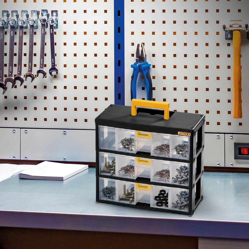 La caja organizadora modular con gavetas de 3x80 milímetros de Rimax ofrece una solución de almacenamiento eficiente y espaciosa para tus herramientas y accesorios. Con tres gavetas de amplio tamaño, este organizador proporciona un sistema de organización versátil y práctico para tu espacio de trabajo.