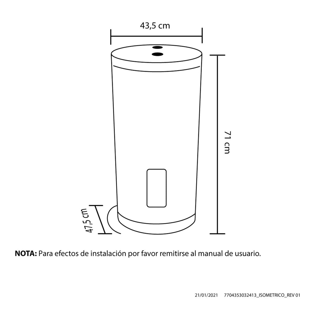 Calentador de agua, acumulación, eléctrico, capacidad de 15 gal, no requiere ducto de evacuación y cuenta con botón de luz indicador de termostato. Es de fácil manejo, practico y posee control eléctrico. Además tiene llave de desague y fuentes de calor que brindan mayor comodidad.