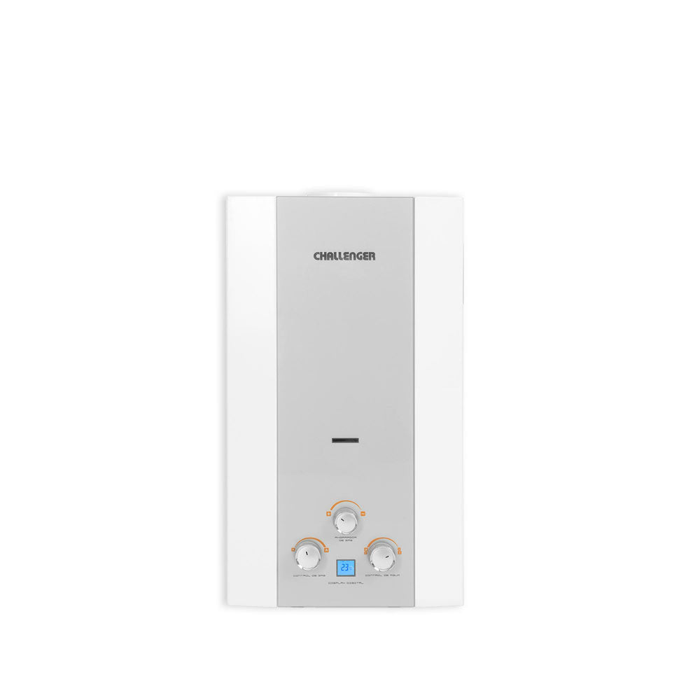 Tu calentador CHALLENGER está diseñado para ofrecerte la mejor experiencia en confort y eficiencia energética. Con su elegante frente de cristal templado y display digital, podrás controlar fácilmente la temperatura del agua y monitorear el estado del equipo. Su encendido automático a batería garantiza un funcionamiento sencillo y seguro.