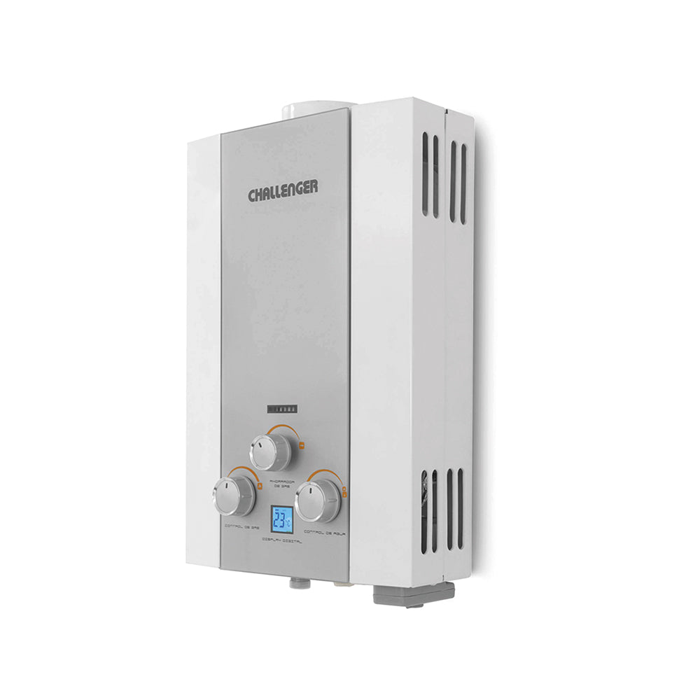 Tu calentador CHALLENGER está diseñado para ofrecerte la mejor experiencia en confort y eficiencia energética. Con su elegante frente de cristal templado y display digital, podrás controlar fácilmente la temperatura del agua y monitorear el estado del equipo. Su encendido automático a batería garantiza un funcionamiento sencillo y seguro.