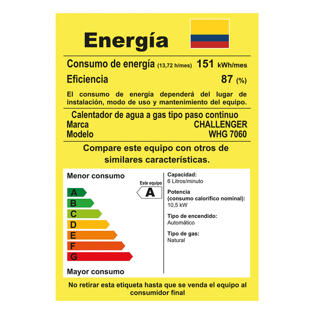 Calentador De Paso Gas Natural 6 Lt Tiro Natural Challenger, Color Blanco