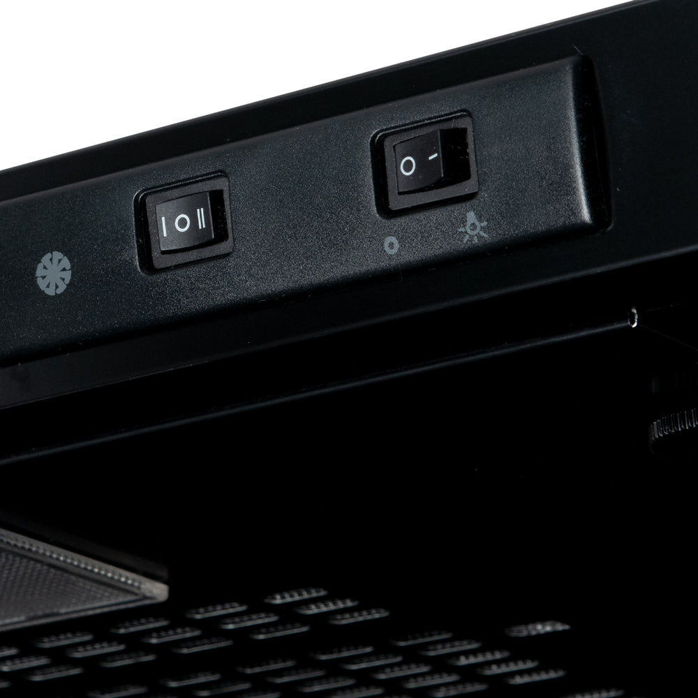 • Control manual frontal tipo rocker switch, que permite seleccionar las diferentes velocidades de extracción y la iluminación de manera independiente.