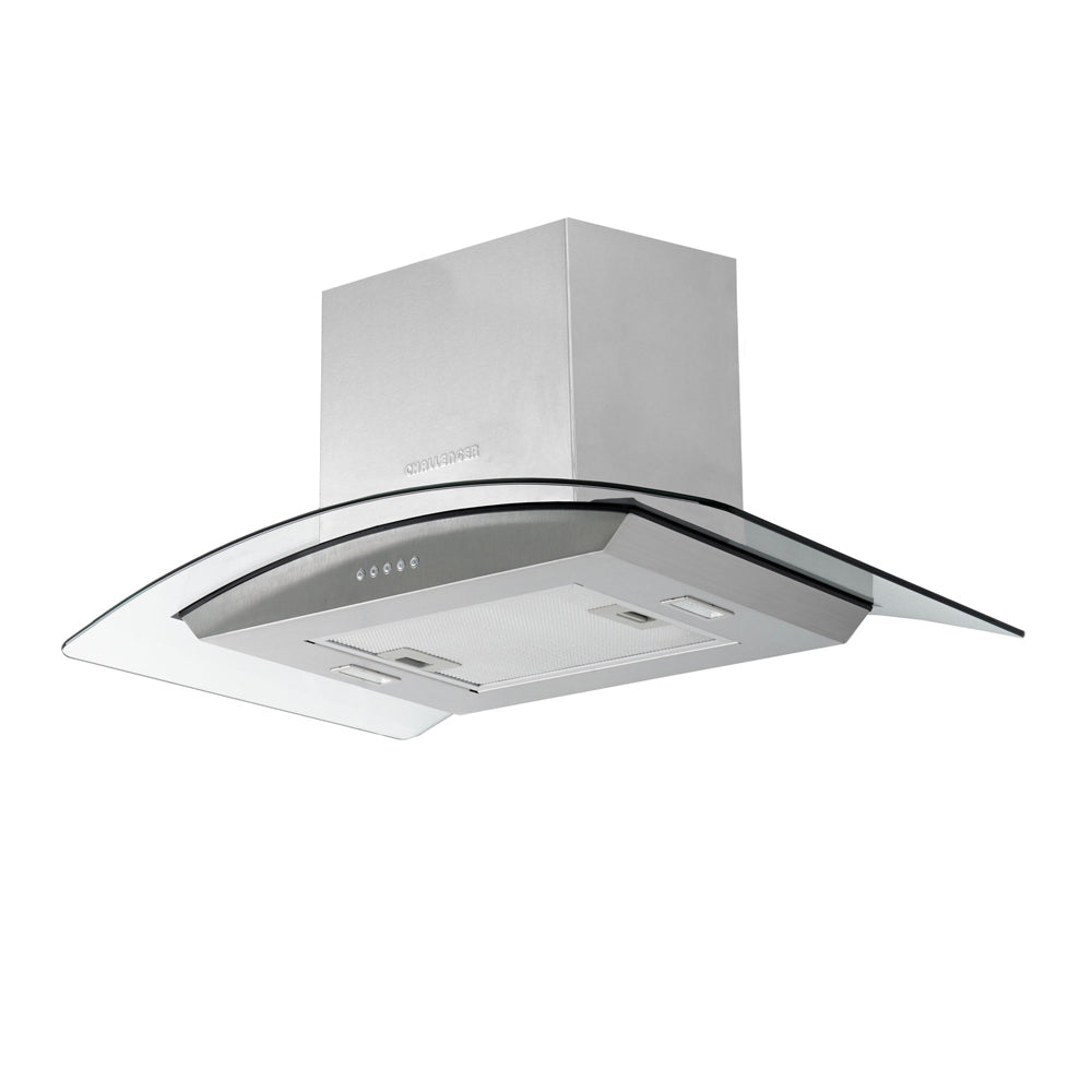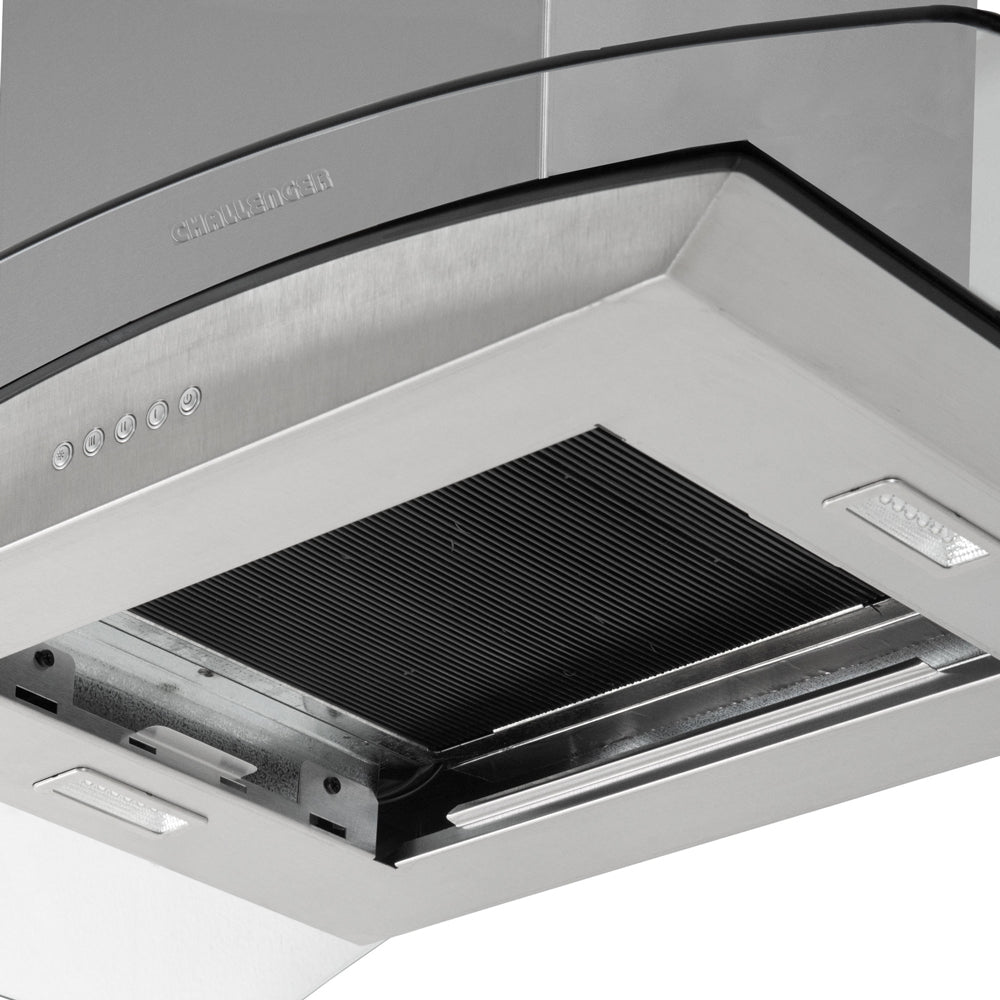 • Campana en vidrio curvo templado y con frente en acero inoxidable de 60 cm de fácil limpieza.